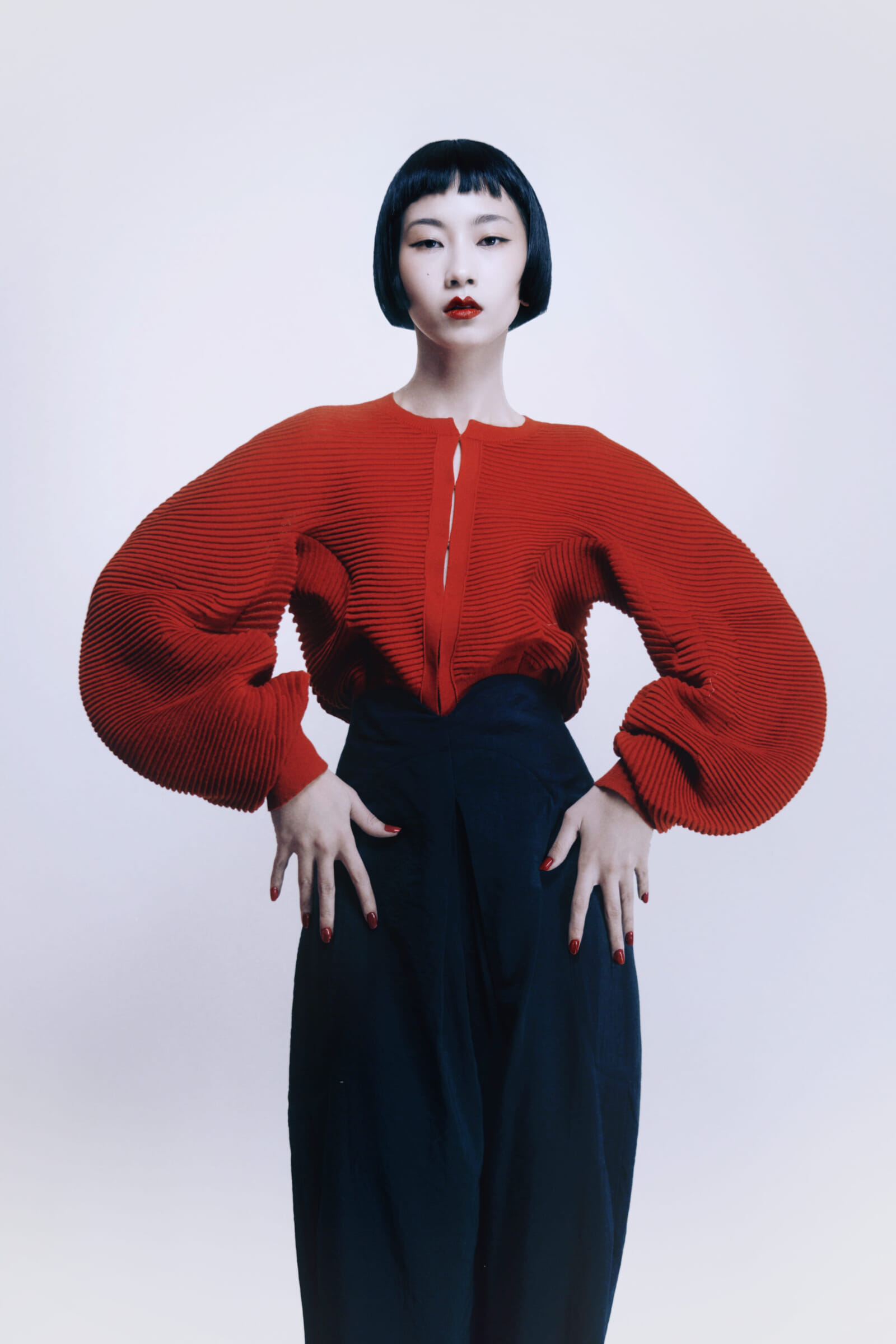 “Yohei Ohno always adds a twist — unexpected cuts, sleeves or colors that make you do a double -take,” Tiara notes. Like Tiara, Yohei Ohno draws much of his inspiration from various fields of art, especially design and architecture, which is apparent in his bold and poetic visual language.