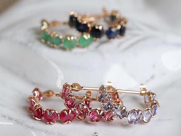 Diamonds may be forever but ruby and amethyst add a welcome touch of color to your look. Pick up these hoop gem earrings for ¥9,454 (amethyst) ¥18,500 (ruby).