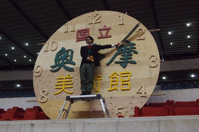 We were on the upper floor of the Yoyogi National Gymnasium when the clock yelled four.