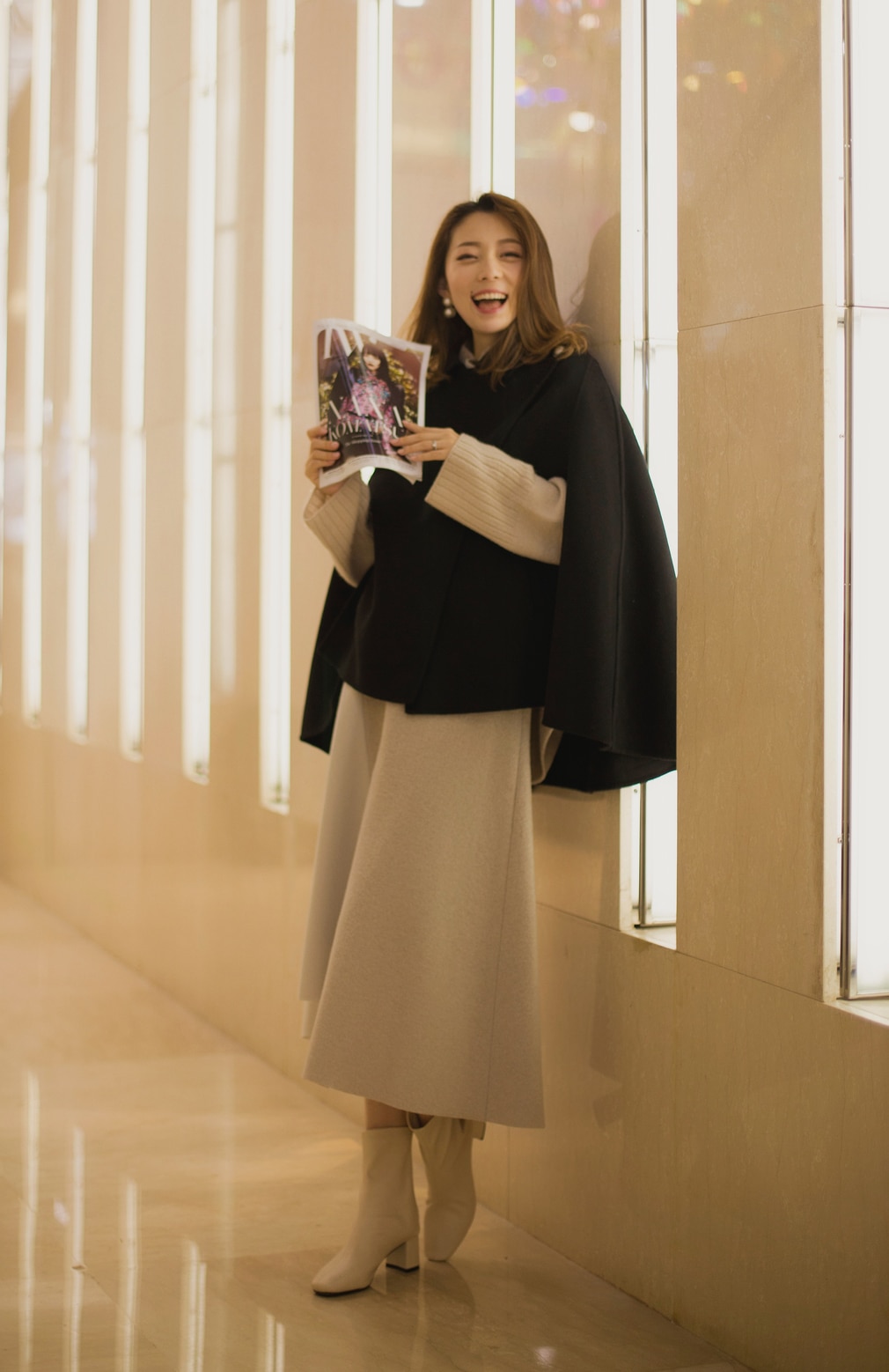 Cape coat stylist’s own, skirt by Dolly Sean, boots stylist’s own