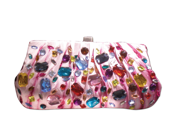 The perfect way to add color and sparkle to a little black dress, this bag is handmade in India using tie-dyed silk and multi- colored jewels. It can be carried as a clutch, or use the long chain to sling it over your shoulder for hands-free accessorizing.