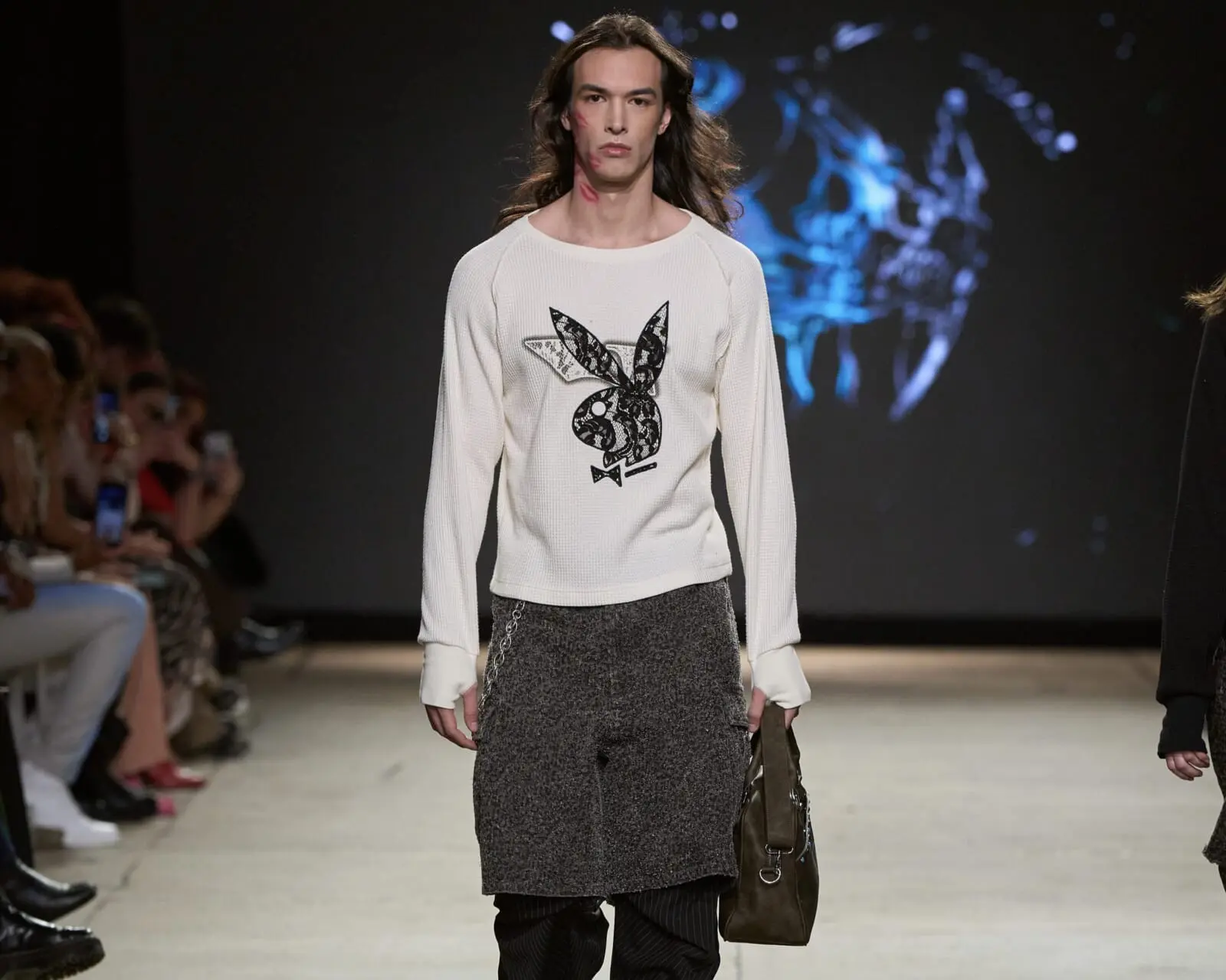 The collection he debuted at NYFW, Playboy, is his most personal yet, which may seem surprising, given its moniker and abundant use of the Playboy rabbit logo. This is actually an homage to Otake’s grandmother and the Playboy × Gucci tracksuit she always used to wear when he was growing up. The rabbit logo, stretched across the velour fabric, wasn’t just branding — it was a symbol of something playful, unrestricted, entirely hers.