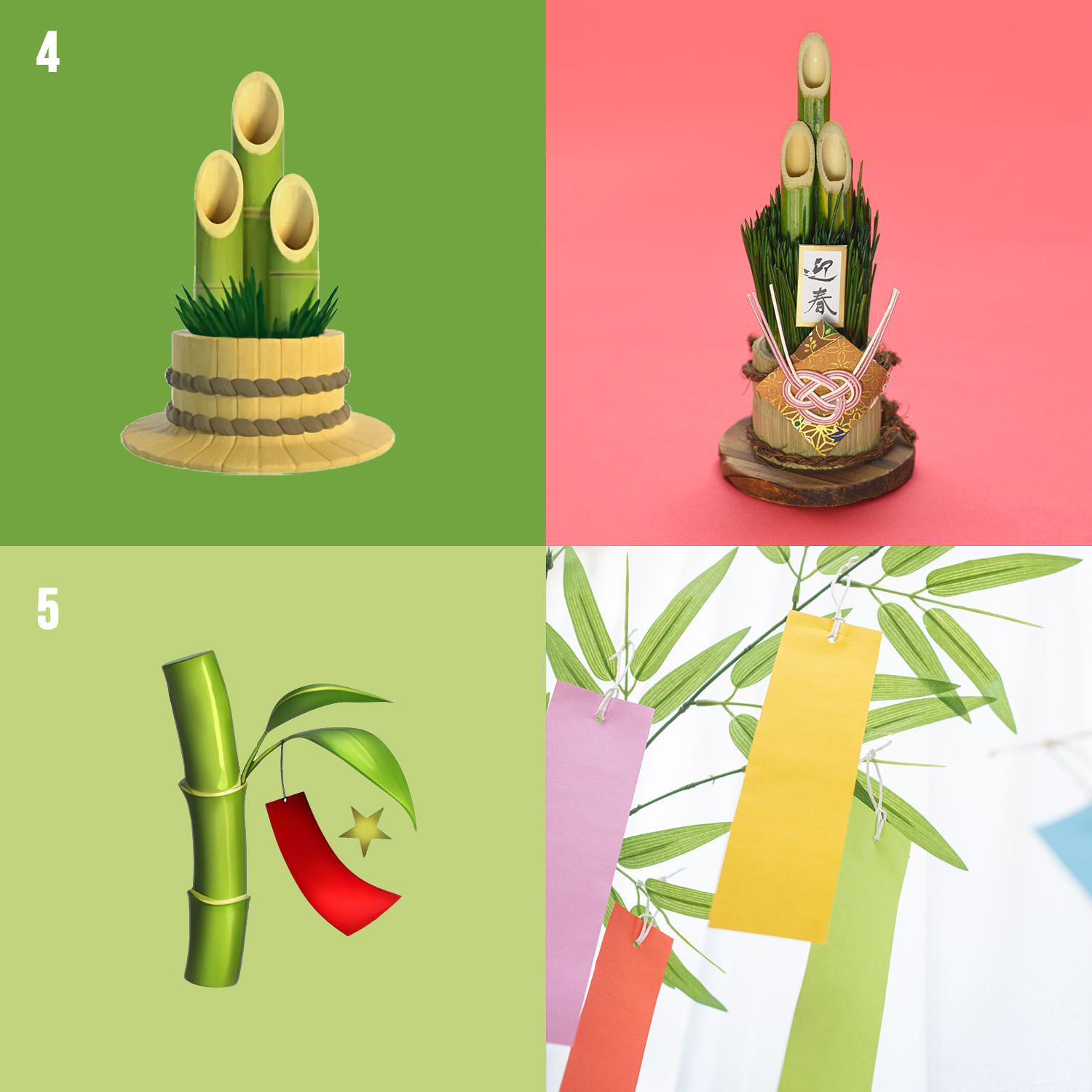 4. Pine Decoration: Kadomatsu are traditional Japanese New Year’s decorations. They’re made of bamboo and are displayed in front of homes and buildings to welcome ancestral spirits.