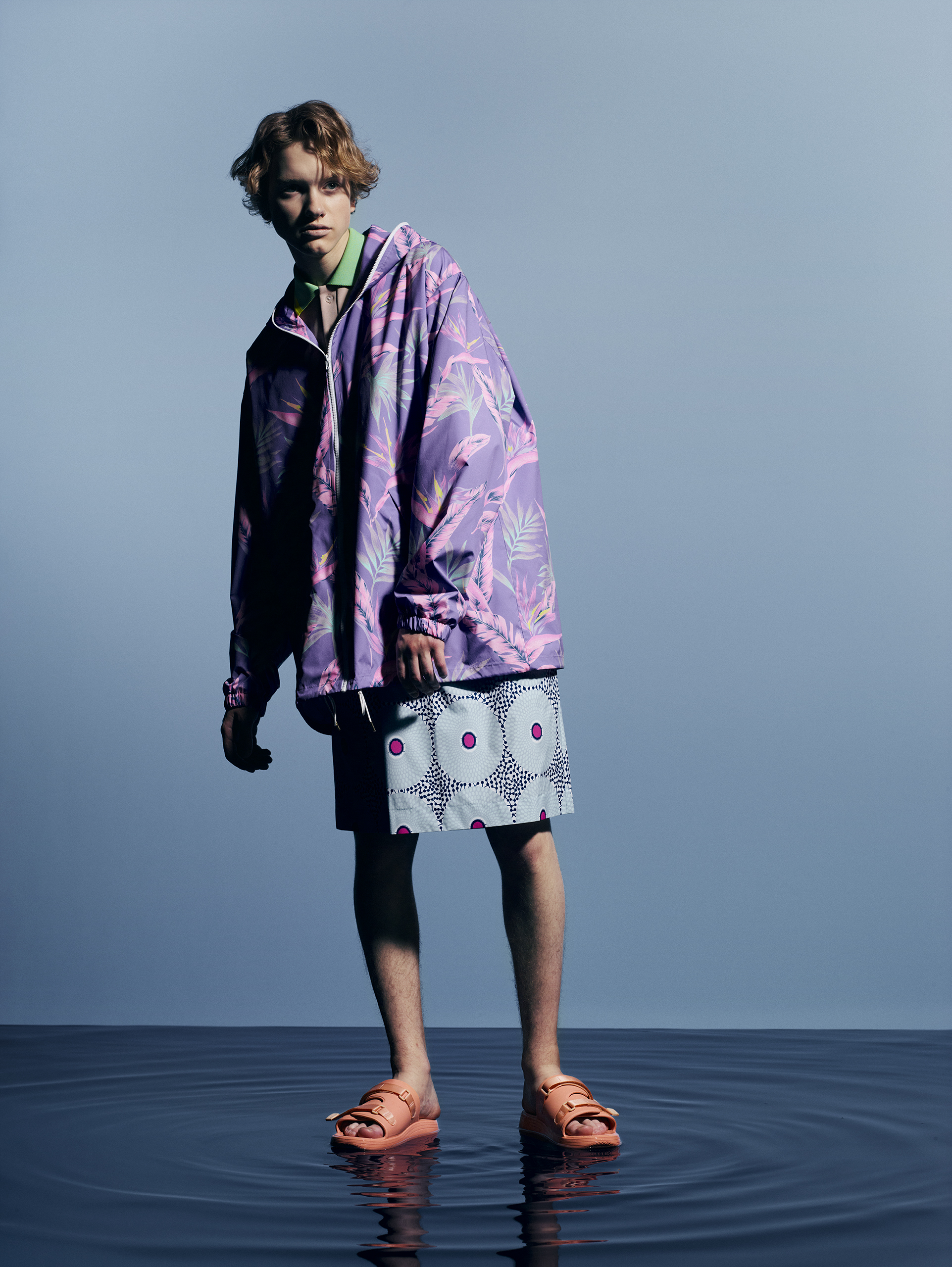 “I’m very concerned with gender,” he says. “From a young age, I thought about Japanese culture and club culture compared with Europe. I’d sometimes put on my mother’s clothes and go to clubs and try on some outfits. It was normal for me to wear women’s clothes and feel androgynous in terms of style from a man’s perspective. This really resonated with me. And perhaps when talking about Japan, there is a kind of air of androgyny here, and there are different aspects to this that may be unique to Japan. All of this can feed into my designs.”