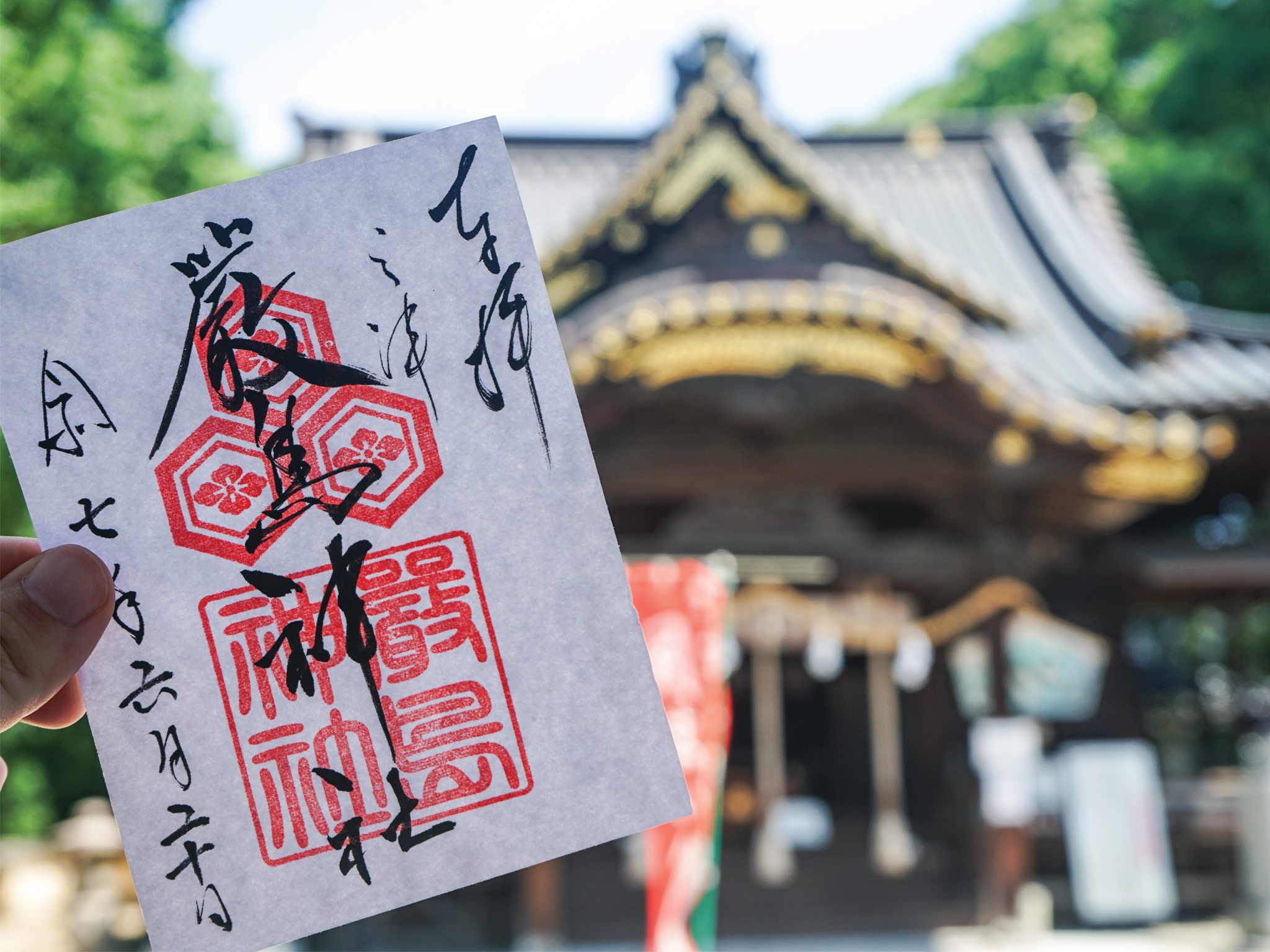 - A second stamp indicating the name of the shrine — not all shrines or temples will have this, while others will have multiple stamps. These may signify the bodhisattva there (in the case of temples), or may be the official emblem of the shrine, or feature some connection with neighboring or related shrines.