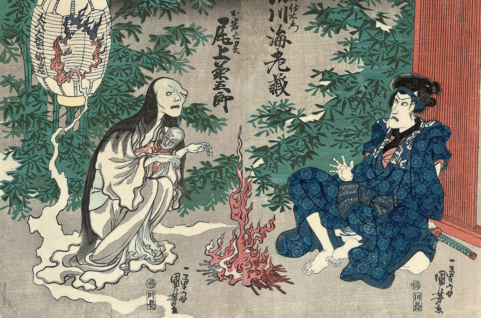 The Peony Lantern, The Dish Manor, The Ghost Story of Yotsuya are the three female-focused foundations of modern Japanese horror. Though their heroines are classified as onryo vengeful spirits, there is a lot of Izanami in them. Two were betrayed by men; all three straddle the border between the intangible world of ghosts and the physical world of the undead. One is even defined by her grotesque appearance. It’s all connected to the earliest literary works in Japan.