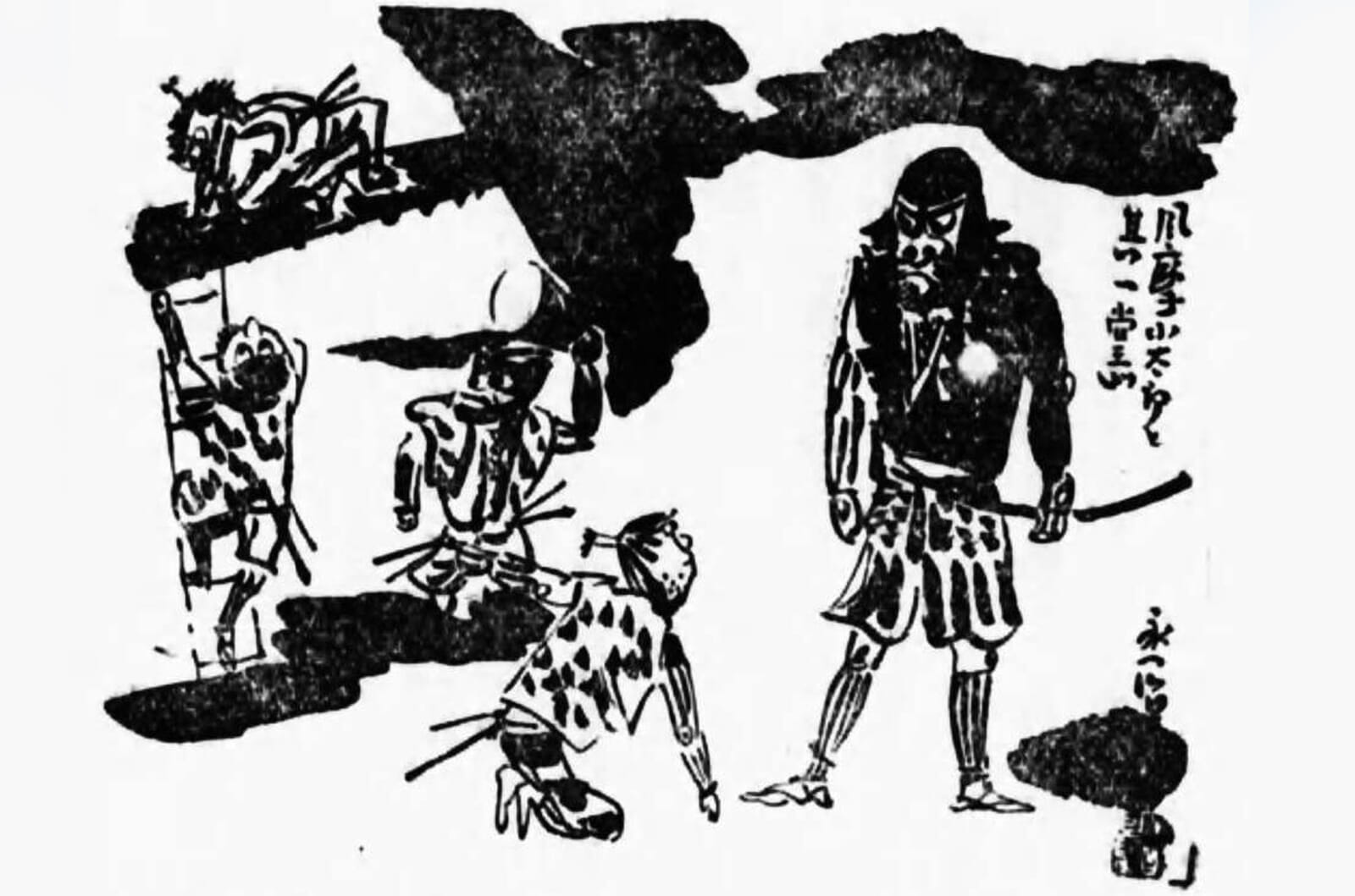 Depiction of the Fuma Clan with leader Fuma Kataro (right) by Eiji Ikeda | National Diet Collections, Wikimedia