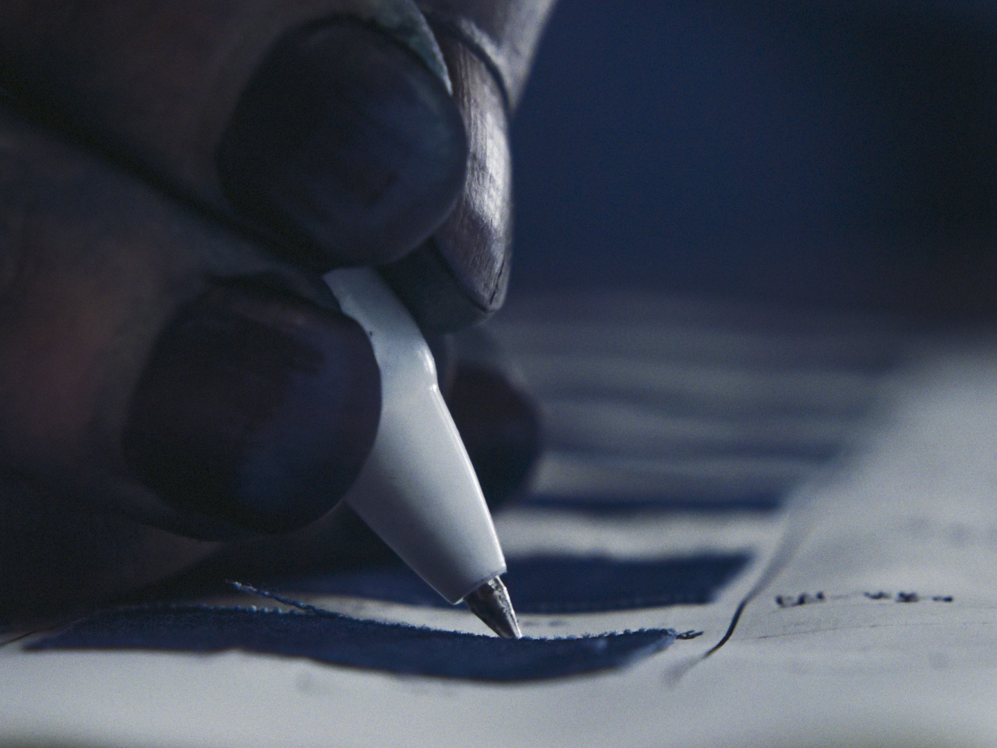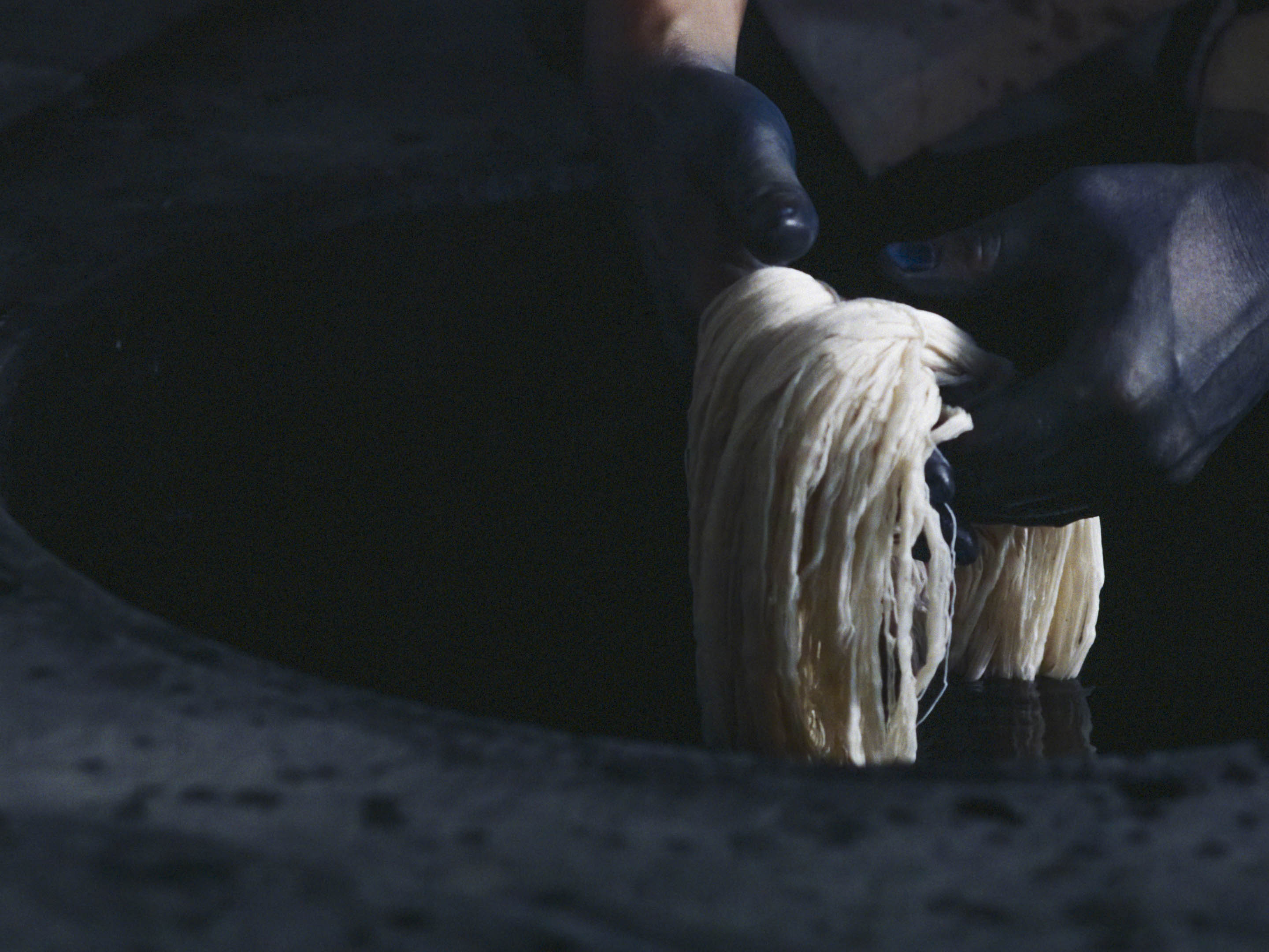 As a filmmaker, she often turns her lens toward Japanese culture and society; she’s tackled a wide variety of subjects, ranging from the dark side of the manga industry to the finely honed process of creating bonito flakes. When she came across videos of indigo dyeing online, she was struck by the dye’s lasting imprint on the skin. “I saw that the indigo dyers had blue hands and blue arms,” she remembers. “The blue doesn’t just wash off. [The artisans] carry it into their everyday lives — their bodies are immersed into their craft.”