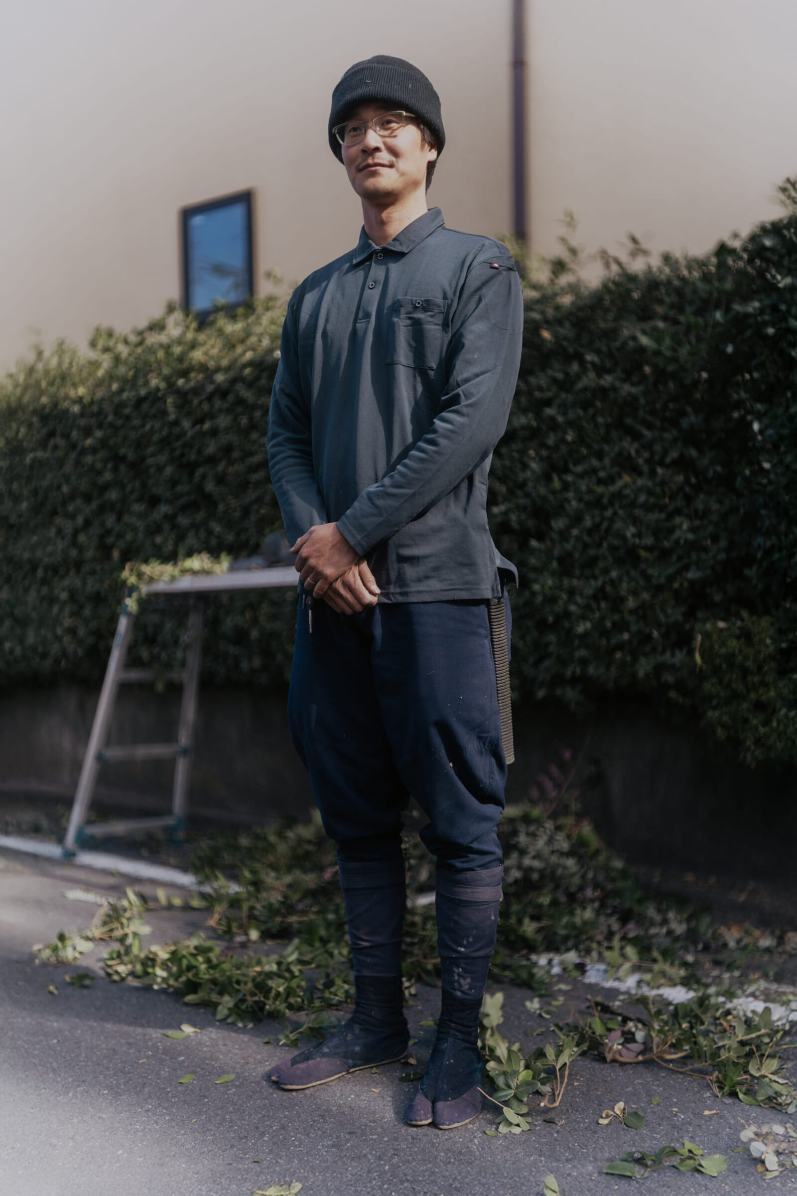 Tobishoku garments, particularly the distinctive nikkapokka pants, are thought to have emerged from a fascinating cross-cultural exchange: Dutch knickerbockers meeting Japanese ingenuity. But while their Western cousins were designed for countryside pursuits, nikkapokka pants — also called nikka in colloquial Japanese — were engineered for harsh outdoor environments and the vertigo-inducing demands of high-altitude construction work. With their baggy, wide legs, nikkapokka are easy to move around in; some people even believe that the extra fabric functions like a sail, allowing for a heightened awareness of wind direction. The tapered ankles aren’t merely aesthetic, either — they prevent the trousers from getting caught on equipment.