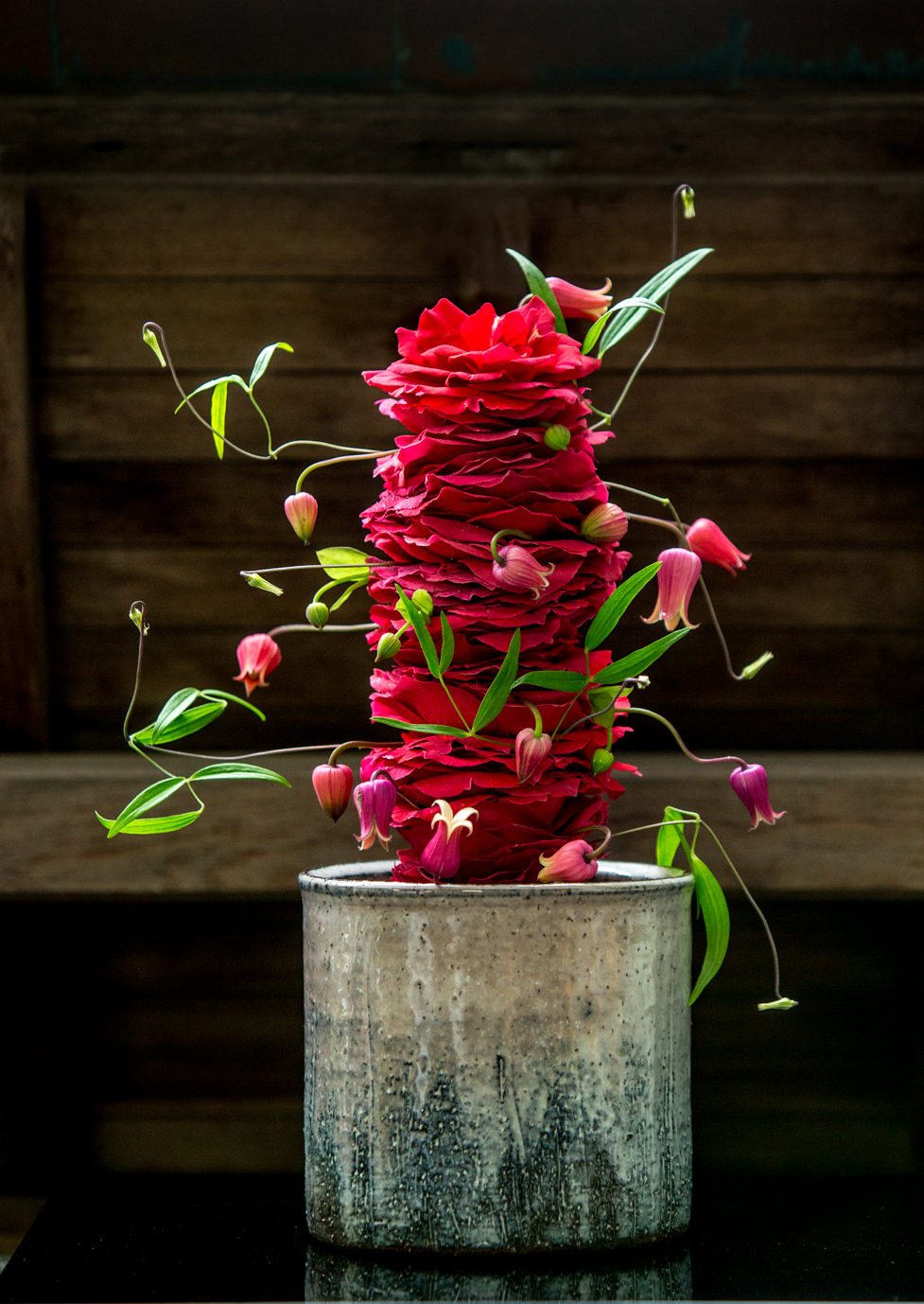 Shortly afterwards, he did exactly that. Around 8,000 guests turned up to see his flowers at the historic shrine despite a typhoon wiping out the last day. This June, he’s set to return to the city for three exhibitions at Shikaumi Shrine, Houmangu Kamado Shrine and Dazaifu Tenmangu. “It’s a truly extraordinary location with over 1,100 years of history,” says Bergmann of the latter. “Yet despite the traditions, the priests there have a modern outlook, wanting to move the place forward. They also have a genuine appreciation of art. I’m really excited about going back there. A lot of my arrangements are done behind a desk now so it feels like this is going back to my roots.”