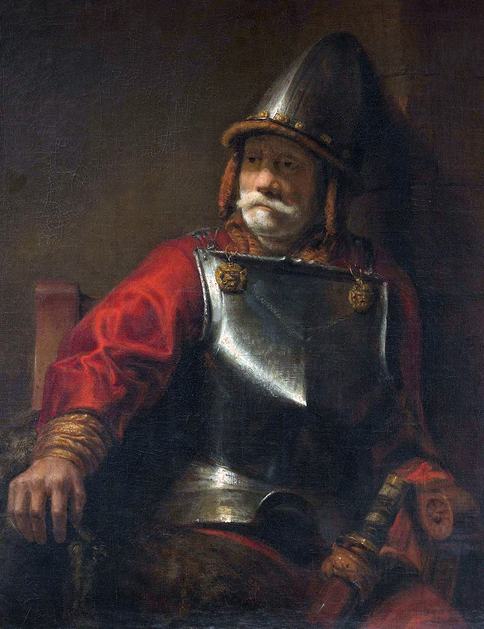 “Man in Armor (Mars)” has been associated with several of Rembrandt’s pupils, including Karel van der Pluym and Heyman Dullaert. However, uncertainty persists regarding its definitive attribution. Mars, the Roman god of war, is portrayed in gleaming armor with a wakizashi, where you expect to find a knightly sword, adding a distinctive and unexpected element to the portrayal.