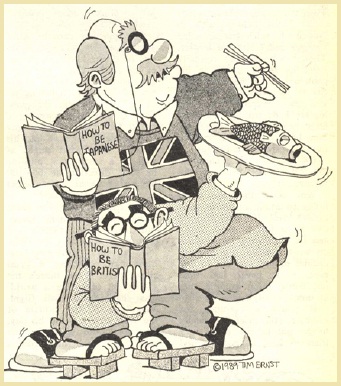 Politeness and courtesy in most Japanese appear to be inbred by their lifestyle and only honed by the eating of raw fish. To develop these skills, an Englishman must: