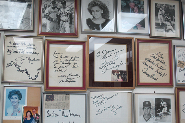 During his time as a professional athlete, Jane opened up the pearl shop a few steps away from Roppongi Crossing. The pearl shop attracted many of the athletes and wives from the baseball league, which led to many celebrities and even royalty to become loyal customers of the business. Celebrities like Brooke Shields, Elizabeth Taylor, Harrison Ford, Jodi Foster, Cal Ripken, Don Henley, and other people from all walks of life have been a part of the shop’s long history. And it can all be seen in the framed photos and handwritten notes to Wally and Jane spread throughout the walls of the shop.