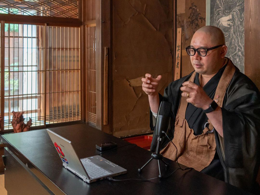 For years, Kawakami has been teaching visitors how to examine their minds at his temple. Thanks to his eloquent English, Kawakami’s meditation courses and talks on mindfulness were popular with foreigners during the tourism boom. The temple grounds have remained closed to visitors in recent months, so the priest has taken his message online. In regular Zoom sessions, Kawakami offers meditation guidance and Q&A discussions with groups of followers from around the world.