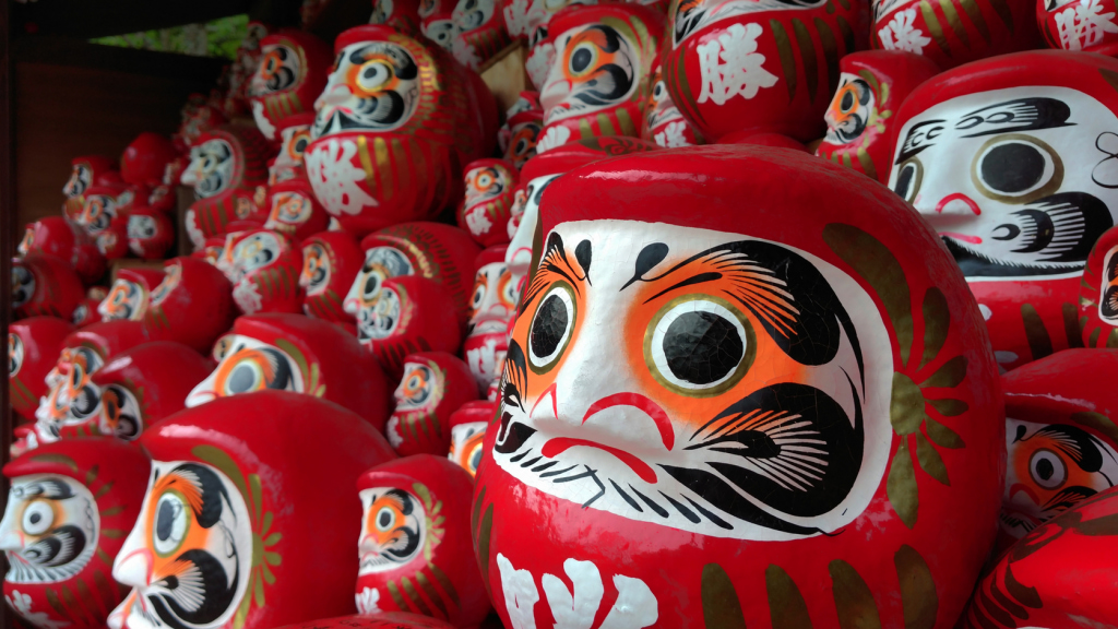Although Daruma dolls greatly vary in their design according to each region and artist, they all boast the same features: two oversized blank eyes that are meant to be painted by the owner.