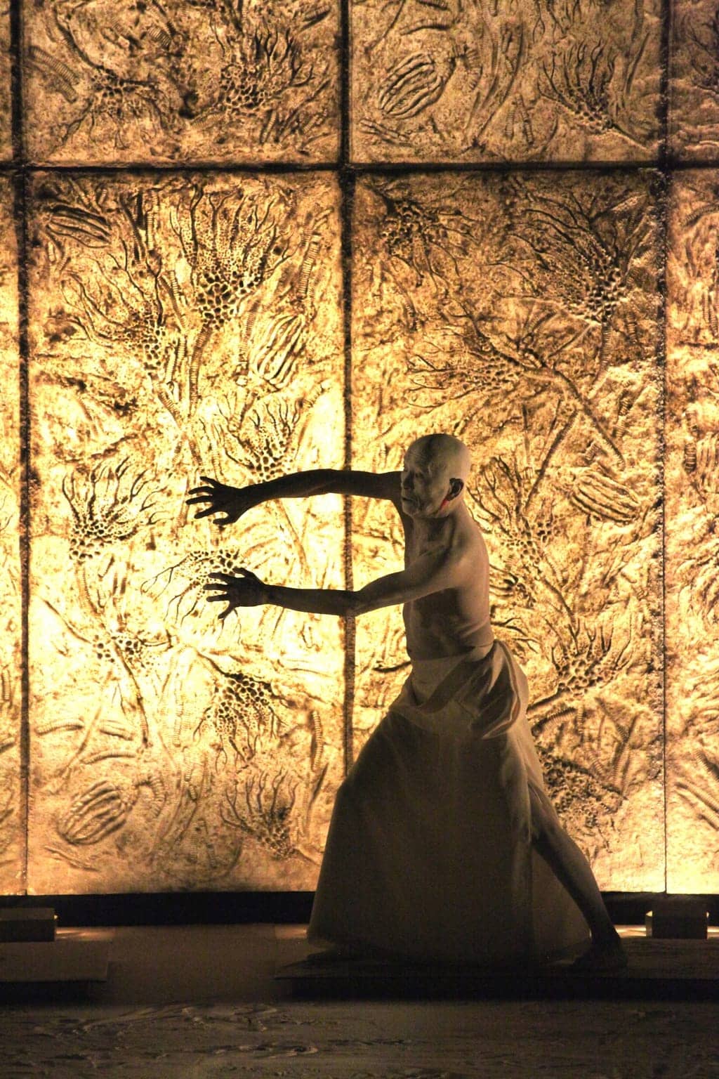 I’m only 10 minutes into my interview with Ushio Amagatsu, founder of butoh dance company Sankaijuku, when he stands to demonstrate how he choreographs the abstract movements of his productions. So far, our conversation has also been pretty abstract, so I’m quite relieved that he’s chosen to show rather than tell at this point.