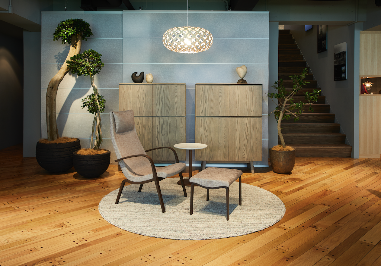 Most recently, German designer Michael Schneider unveiled the new TEN collection. Derived from aeronautical engineering principles of a sturdy skeleton and a lightweight skin, TEN tables are made from ash wood harvested in Hokkaido. The Korento line of sturdy, stylish armchairs was developed by Finnish designer Mikko Halonen, a finalist at the International Furniture Design Competition in Japan.