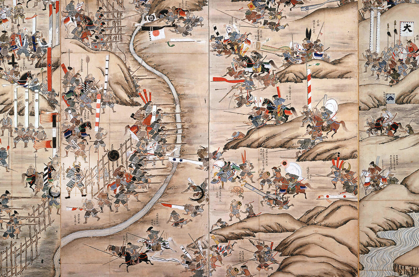 Image from The Battle of Nagashino folding screen (c. 18th century) with Honda Tadakatsu highlighted on the lower left