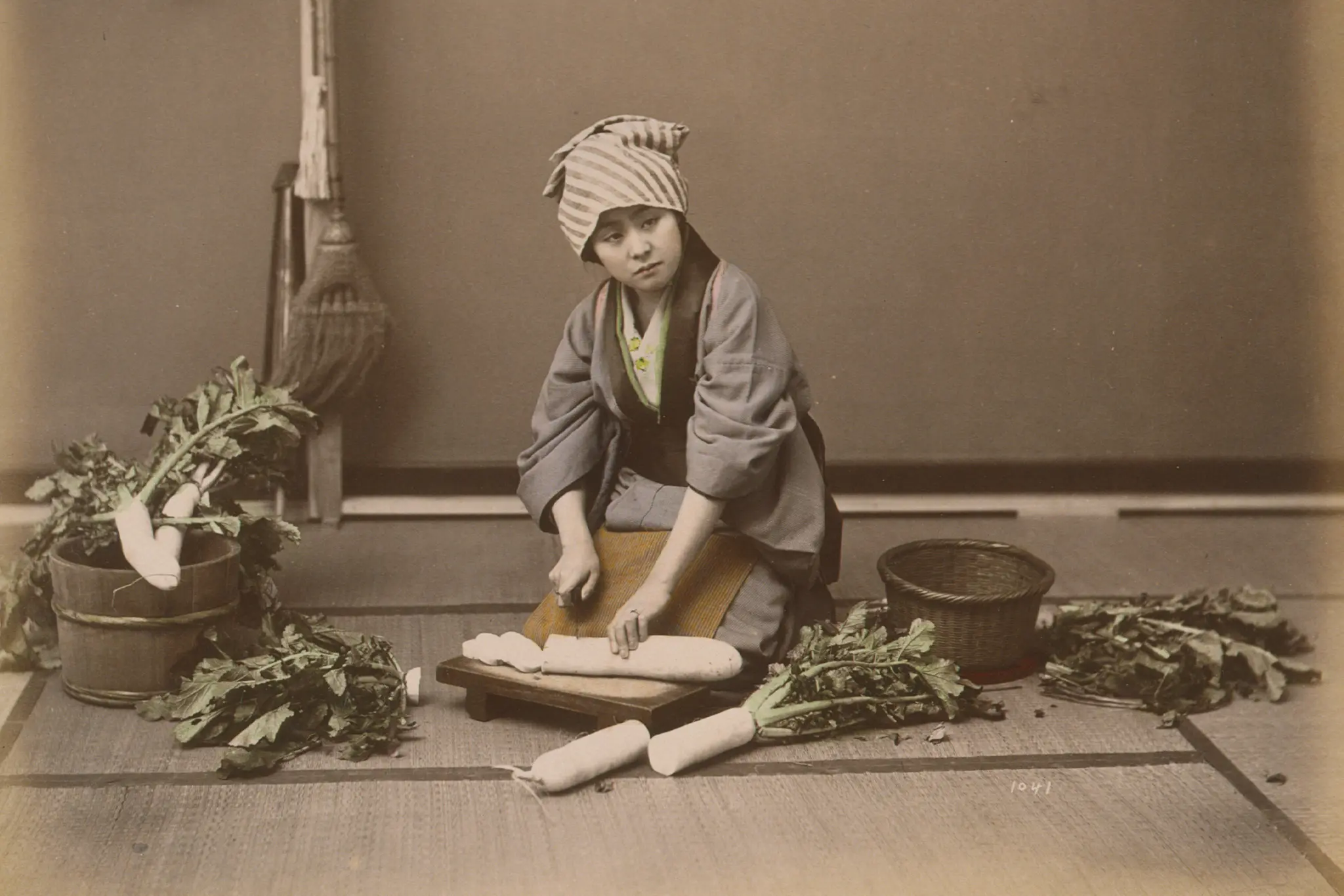 Literally translating to “mistress of the house,” the term shufu differentiates the Japanese housewife from the working woman. From the Showa period (1926–1989) onward, housewives were tasked with not only the daily running of the residence, but the needs of their children and husbands, as well as the household budget. The tradition remains strong today. Despite a concerted effort by the Japanese government in 2013 to promote the place of Japanese women in the workplace, a survey conducted in the same year found that 34% of single women in Japan did not wish to continue working following marriage.