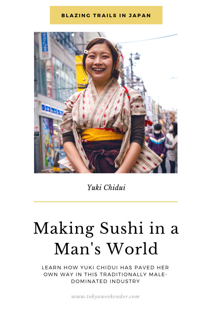 “Did you know that sushi chefs are not allowed to wear any make-up? We’re also not allowed to have any hairstyle other than a short, unstyled crop. And we should be silent and stern while making sushi,” she tells me. I should mention that, during our interview, Chidui is dressed in a cute traditional yukata and her face is perfectly made up. She is breaking every rule she just listed.