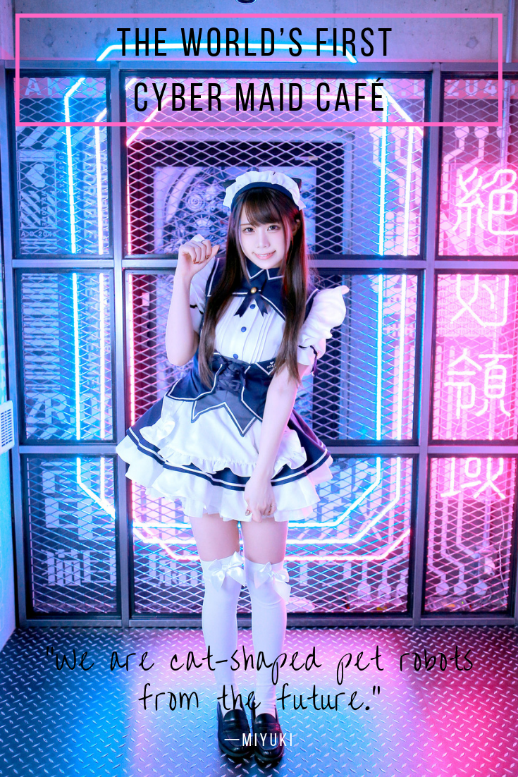 But what exactly makes Zettai Ryoiki A.D. 2045 a “cyber maid café”? To find out, I talk to the cat-eared maid, Miyuki. “The difference between regular maids at a maid café and us cyber maids is that we are cat-shaped pet robots from the future. Other cafés have regular humans working at them. But we have always been cat robots,” Miyuki explains, not breaking character once.