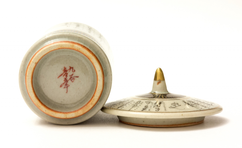 On the underside of the pieces is the Kutani signature, normally painted on as porcelain marks.