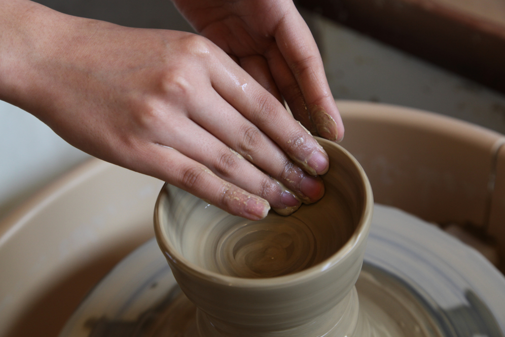 Kutani is made from white China clay from Komatsu. The purified clay is shaped by the potter and then fired once. Next, an underglaze is applied, along with a white glaze, which turns it translucent and almost glass-like after firing. The white glaze helps to strengthen the porcelain piece. The ceramic is then fired once more.
