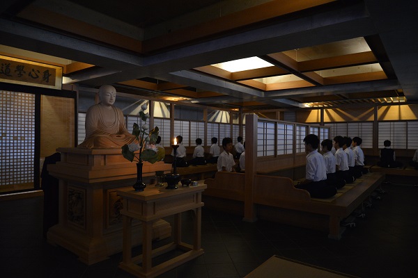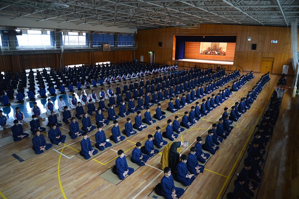 On a cold, clear morning during the first week of December, a large group of students enter the gymnasium at Setagaya Gakuen and sit cross-legged on black cushions, folding their legs into the half or full lotus position. They shift their weight from side to side until they come to rest, hands resting in their laps in an oval position. During the 40-minute sitting period that follows, the gymnasium is quiet, aside from instructions delivered by a head teacher during the sitting period.