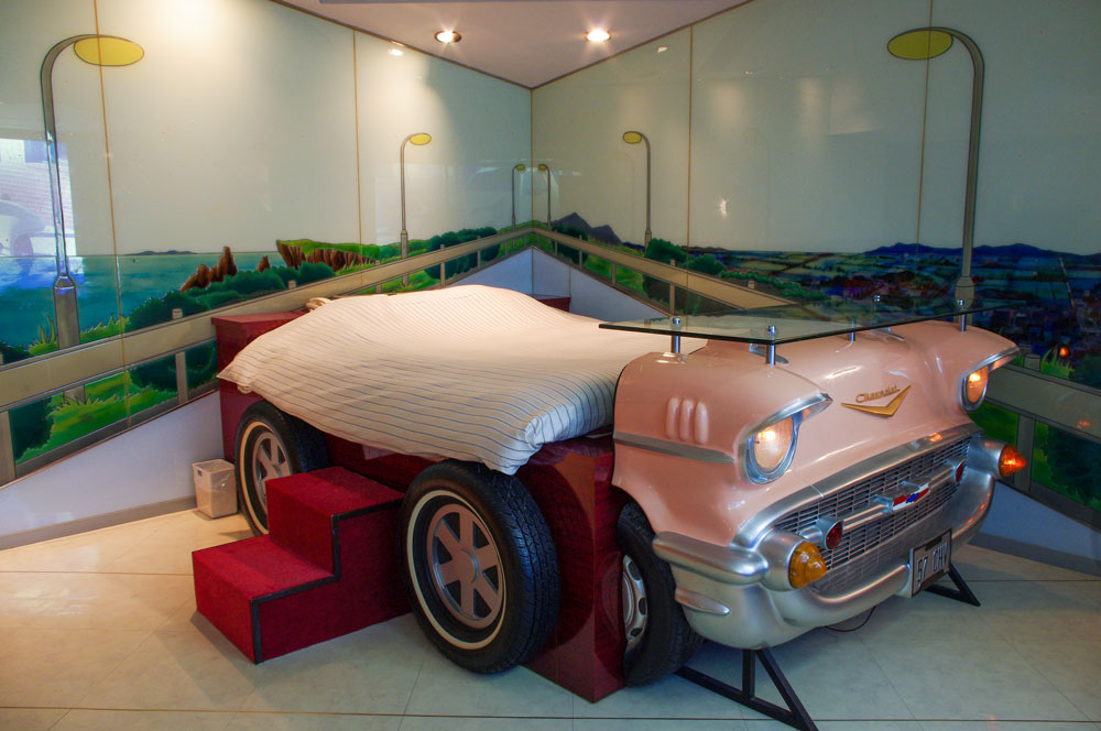 Unlike many other aspects of Japanese culture, love hotels are not descendants or a renaissance of an older custom. Their rise in the modern Japanese landscape was possible thanks to particularities of Japanese culture, however, along with the influence of American motels. In 1960s Japan, cars became more popular and highways were built and expanded at a rapid pace. Seeing the successful take-off of an accommodation type suited for truckers, travelers and businessmen in the United States inspired Japanese real estate developers to open their own version here. They quickly found, though, that their true clientele were young couples. The difference in demographic was so clear that motel owners started experimenting with their interior decor – and this is what would eventually become one of the defining aspects of Japanese love hotels.