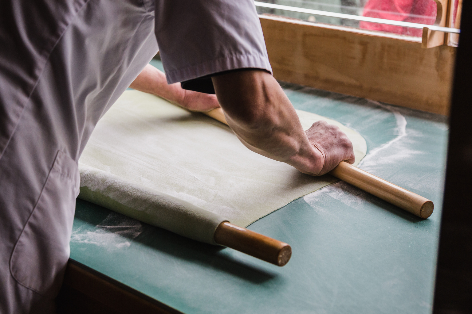 When I arrived in Japan, I ended up working for two years in a hand-rolled soba restaurant called Shinnenura Komatsu-an, run by the Okamoto family. Since then, each year when New Year’s Eve comes around, they ask for a helping pair of hands to handle the crowds outside lining up to get their toshikoshi soba fix.