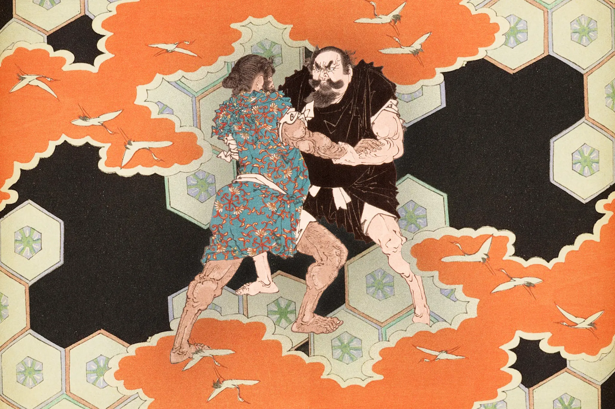 This probably didn’t really happen and might have been Raiden’s fans trying to draw parallels between their favorite wrestler and another “first” sumo match in history. We already talked about the one from the Nihon Shoki, but according to the Kojiki chronicle from 712, sumo was born when the god Takeminakata-no-Kami challenged fellow deity Takemikazuchi-no-Kami to a test of strength and got his arm crushed “as though it were a young reed,” which was then “[thrown] away.” So, say what you will about the world of modern sumo: it may be ridden with scandals but at least the losers are leaving the ring alive and with the same number of limbs that they entered it.
