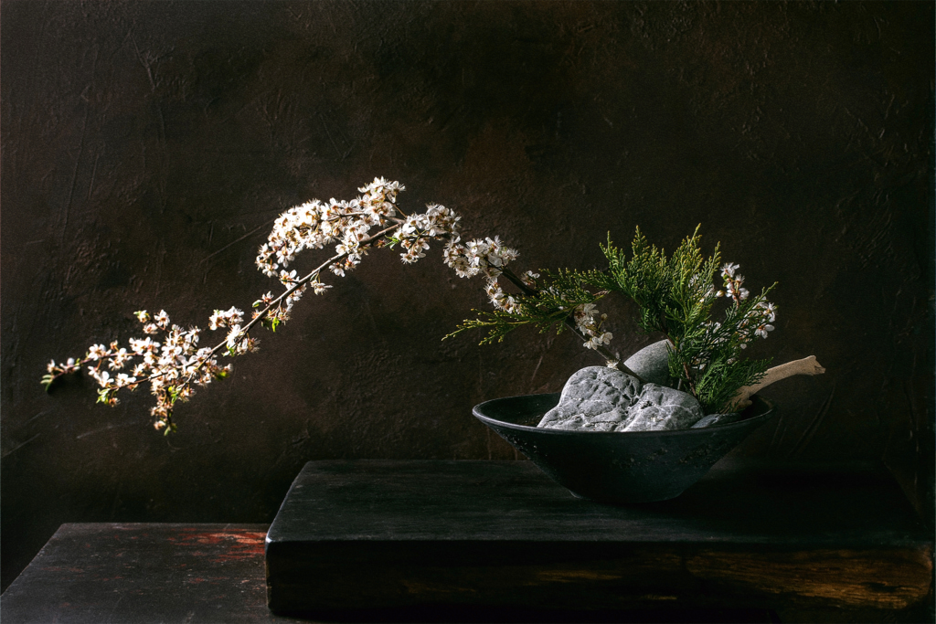 Ikebana, also known as kado, is different from its western counterparts in that it emphasizes space and creativity. Flowers are arranged, balanced and teased into fantastic shapes, highlighting the beauty of their natural form. Because the components of ikebana are minimal, each part is important and forms a significant basis of the final ikebana structure.