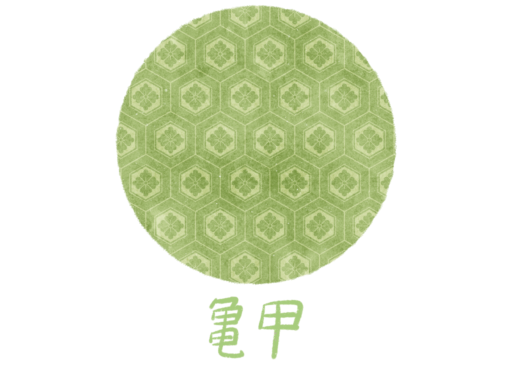 The kikko wagara is inspired by the hexagonal patterns on the shells of tortoises, auspicious animals that symbolize longevity. Its name may have reminded you of Kikkoman, the world’s leading manufacturer of soy sauce. Kikkoman’s logo features a kikko hexagon and the kanji for the number 10,000.