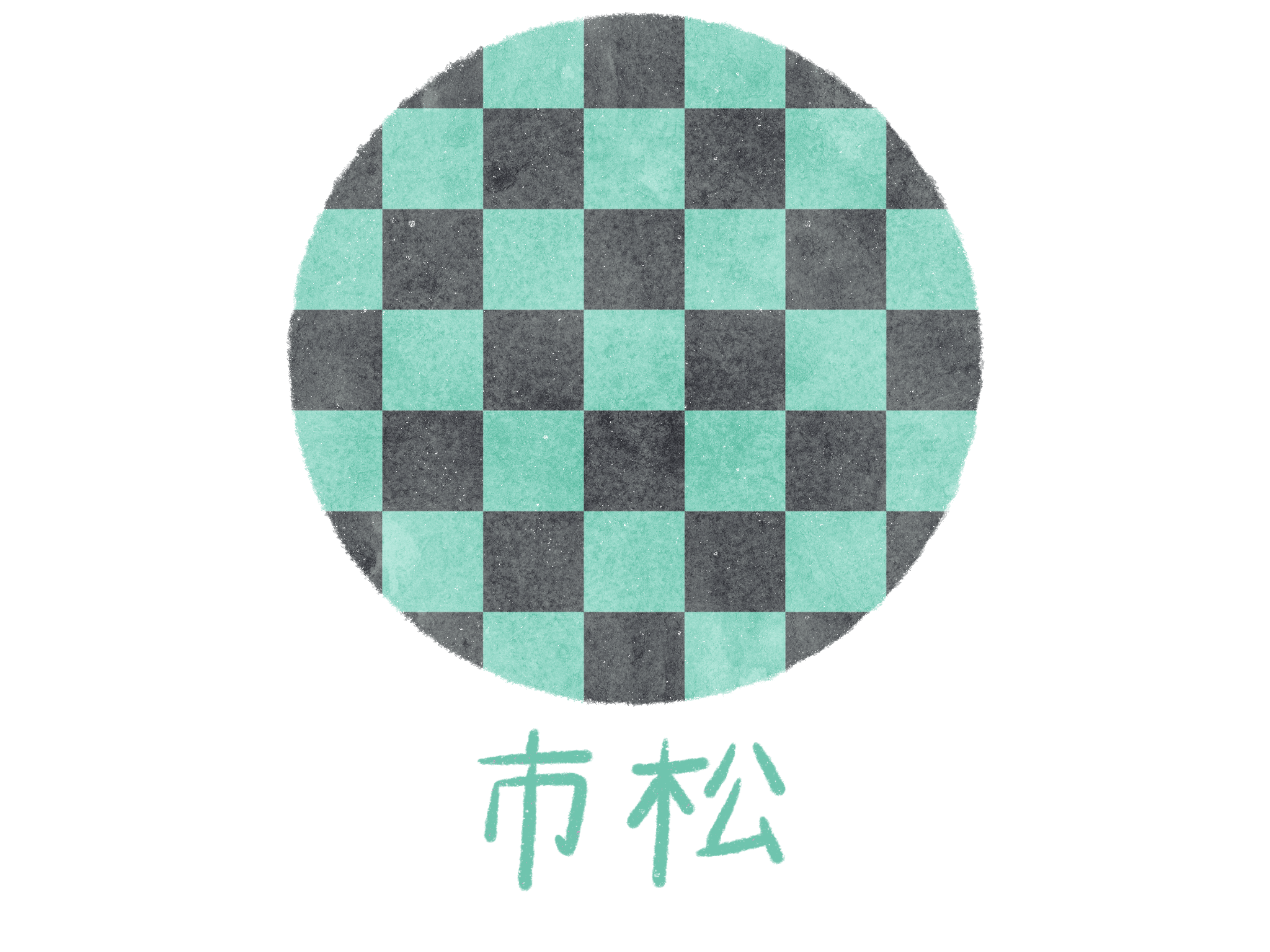 “Ichimatsu” translates to “checkered pattern,” and it shows the contrast between two colors in alternating squares. The name is derived from 18th-century kabuki actor Sanogawa Ichimatsu, who often wore costumes with this pattern. Because of its perpetual, uninterrupted pattern, ichimatsu symbolizes prosperity.