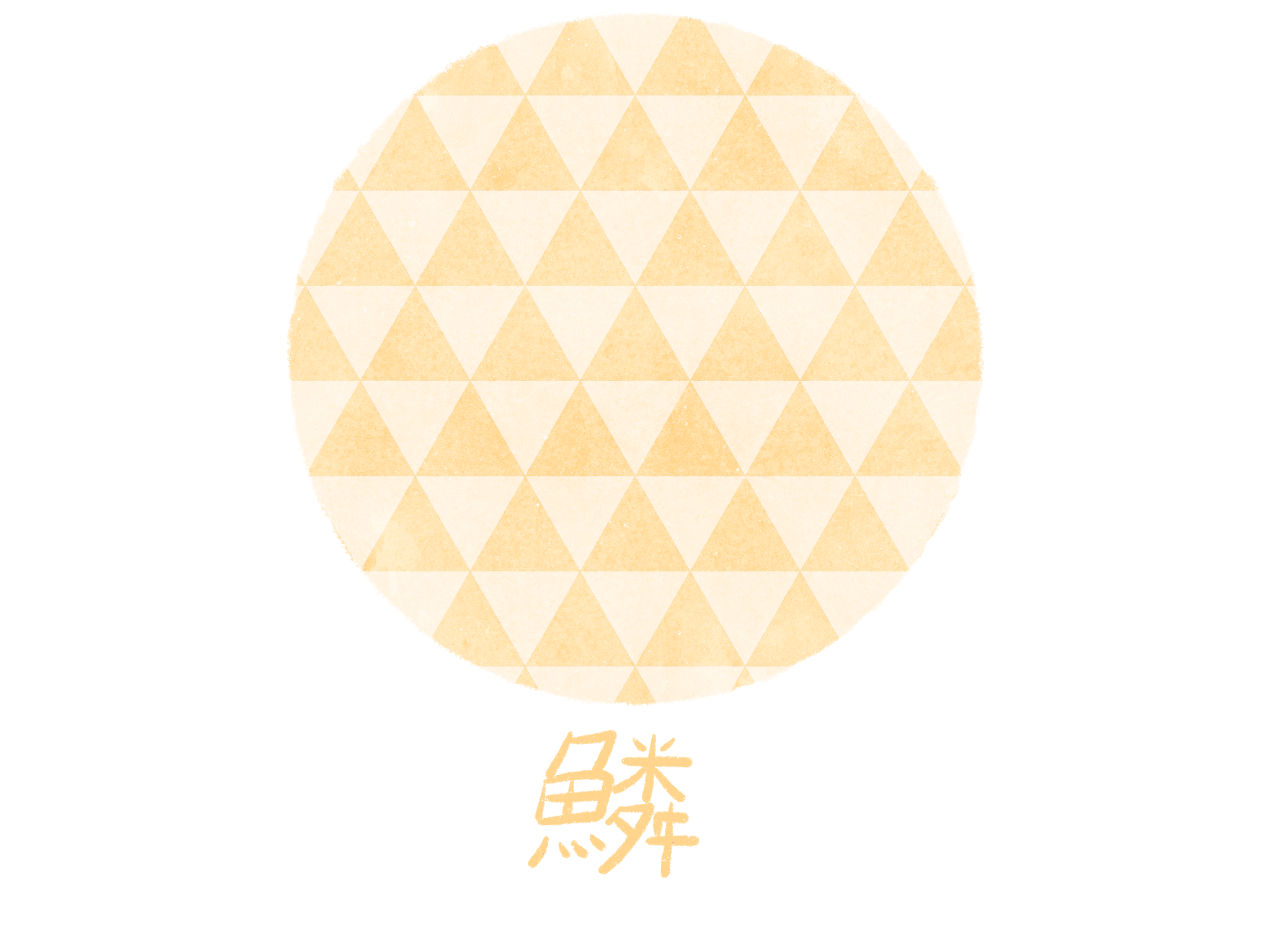 Uroko’s triangular pattern mimics the scales of snakes and fish. Because scales in nature protect animals from predators, the triangular shape of this wagara is said to ward off evil and bring protection to the body. Ancient tombs used uroko talismans to deflect demonic spirits. More recently, there is a custom for women in Kyoto to wear uroko-patterned naga-juban (kimono undergarments) during their yakudoshi unlucky years as a protective charm against harm and misfortune.