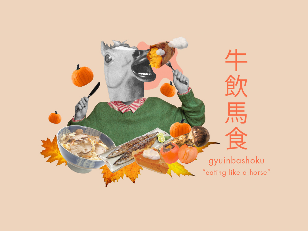 In Japan, autumn is an excuse to fulfill desires: Dokusho no aki (読書の秋) reminds us that the season’s cool evenings are best spent indoors with a good book, while shokuyoku no aki (食欲の秋) encourages us to enjoy the bountiful harvest of the year. However, the downside of this is that, sadly, it’s easy to go overboard when feasting on seasonal delicacies and cooking up new autumnal favorites. This brings us to this week’s yojijukugo, gyuinbashoku — eating and drinking to excess.