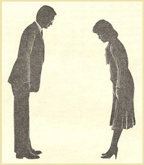If the foreign visitor is inclined to abide by local customs to the extent of bowing at least now and then, his problems are when…and to whom…and to what degree. These rules are understandably quite complicated and not designed for easy mastery. Furthermore, the foreigner may learn a few basic rules and attempt to bow accordingly, only to find that some Japanese, believing him to be a visitor wholly unacquainted with such niceties, do not bow to him at all.