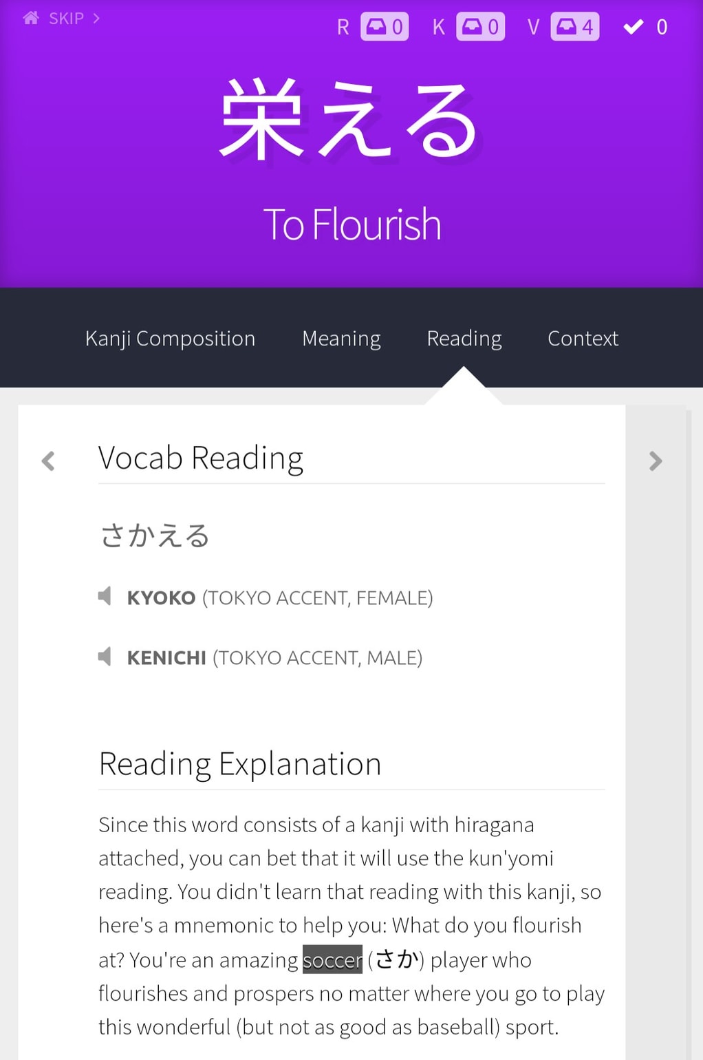 The first three of WaniKani’s 60 levels are free, then you can pay for monthly, annual, or lifetime access. Legend has it that a handful of Chosen Ones were able to complete all 60 levels in a year. But for normal people like me, I highly recommend the lifetime subscription.
