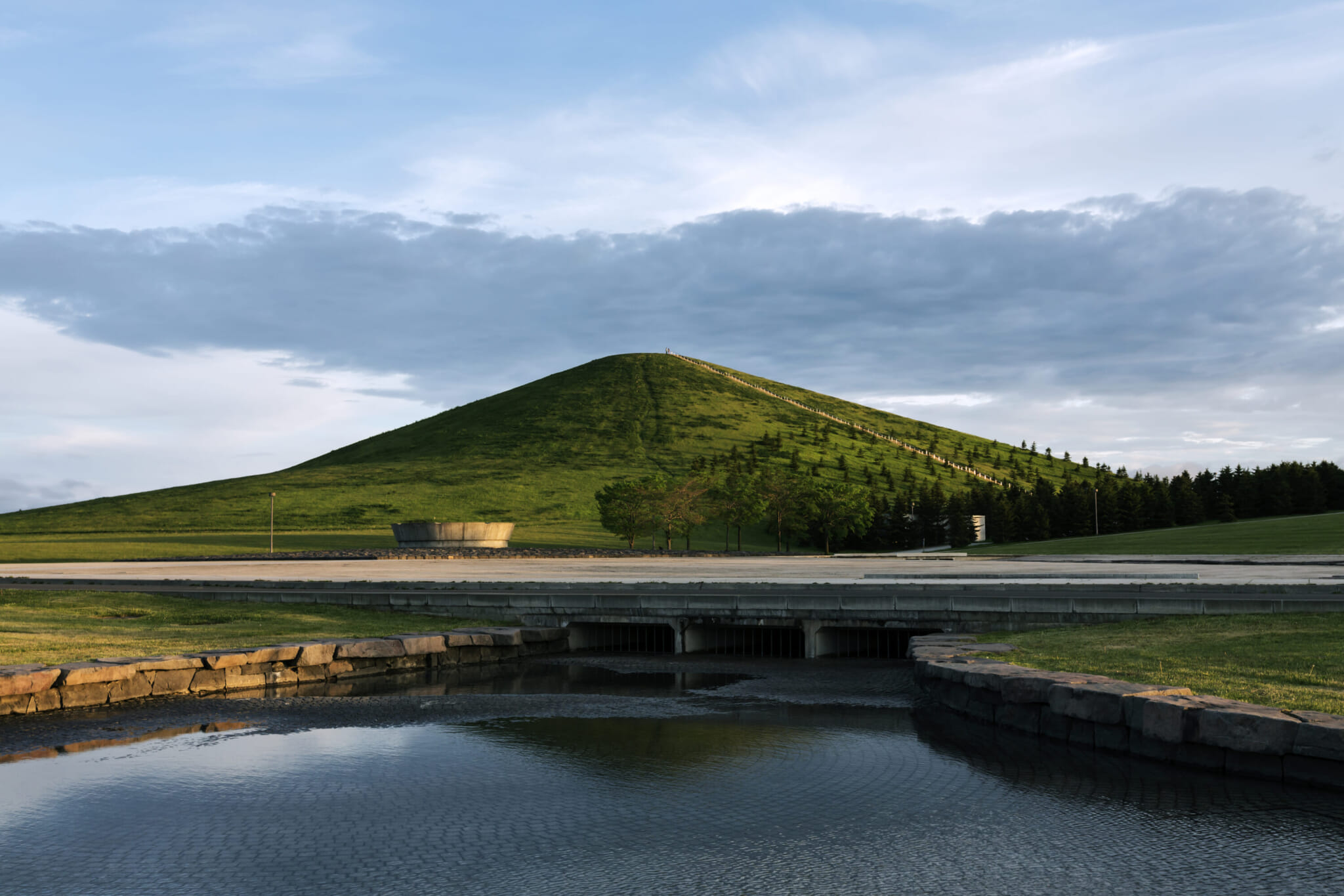 When walking or biking around Moerenuma Park, which spans 189 hectares, its expansive geometric design elements are immediately discernible. At its center sits the large hexagonal hill, called Mount Moere.
