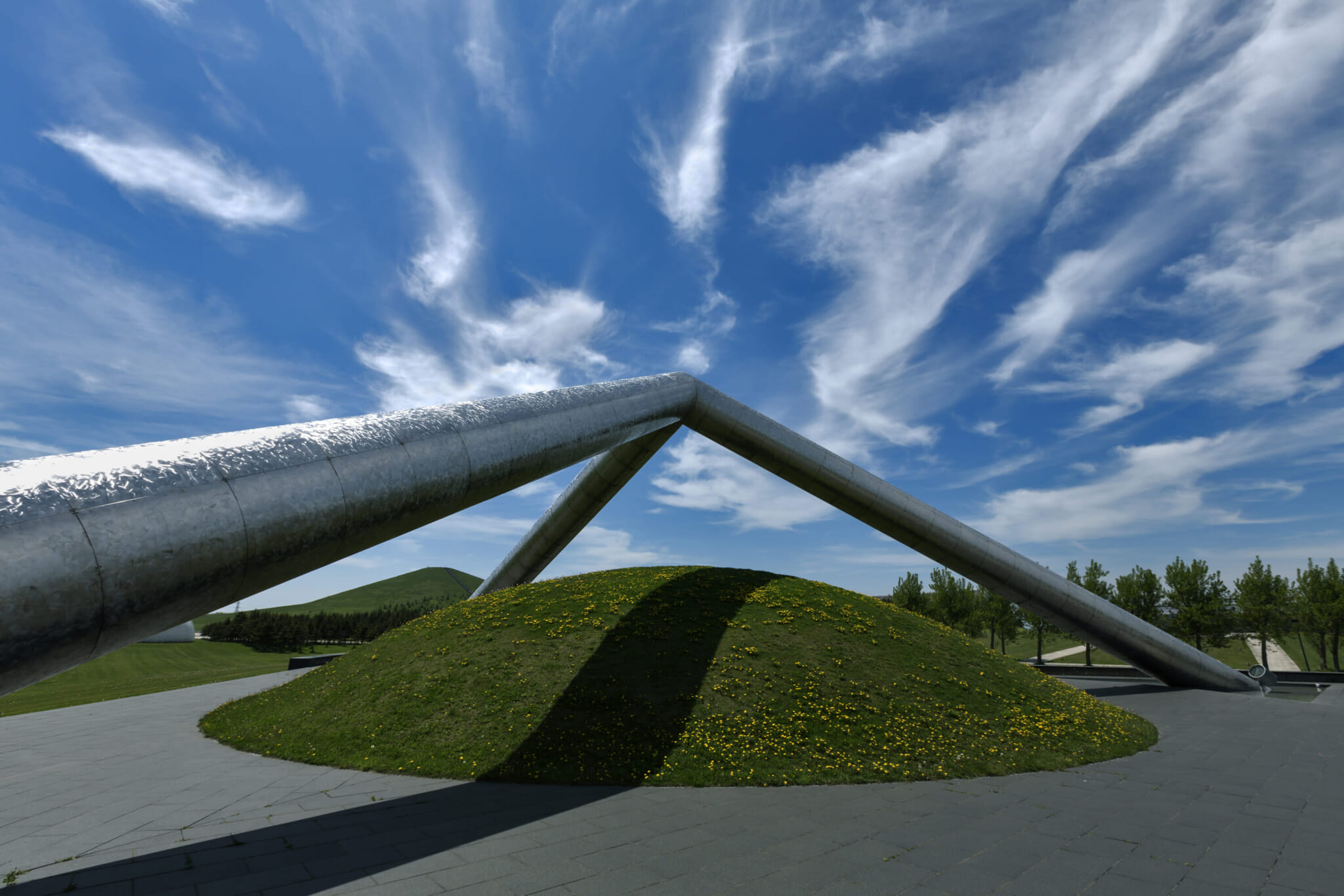 The rubbish mound at Moerenuma Park is huge. Big enough to spot from afar, it looms over Sapporo, imposing and majestic and pyramid-like. Nothing about it appears rubbish mound-esque, though: The human-made mass is green, inviting and covered with lush grass. It’s situated in the heart of Sapporo’s Moerenuma Park, and to me, it perfectly distills the park’s allure: finding beauty in the unexpected, melding the natural and artificial in ways that surprise and delight.