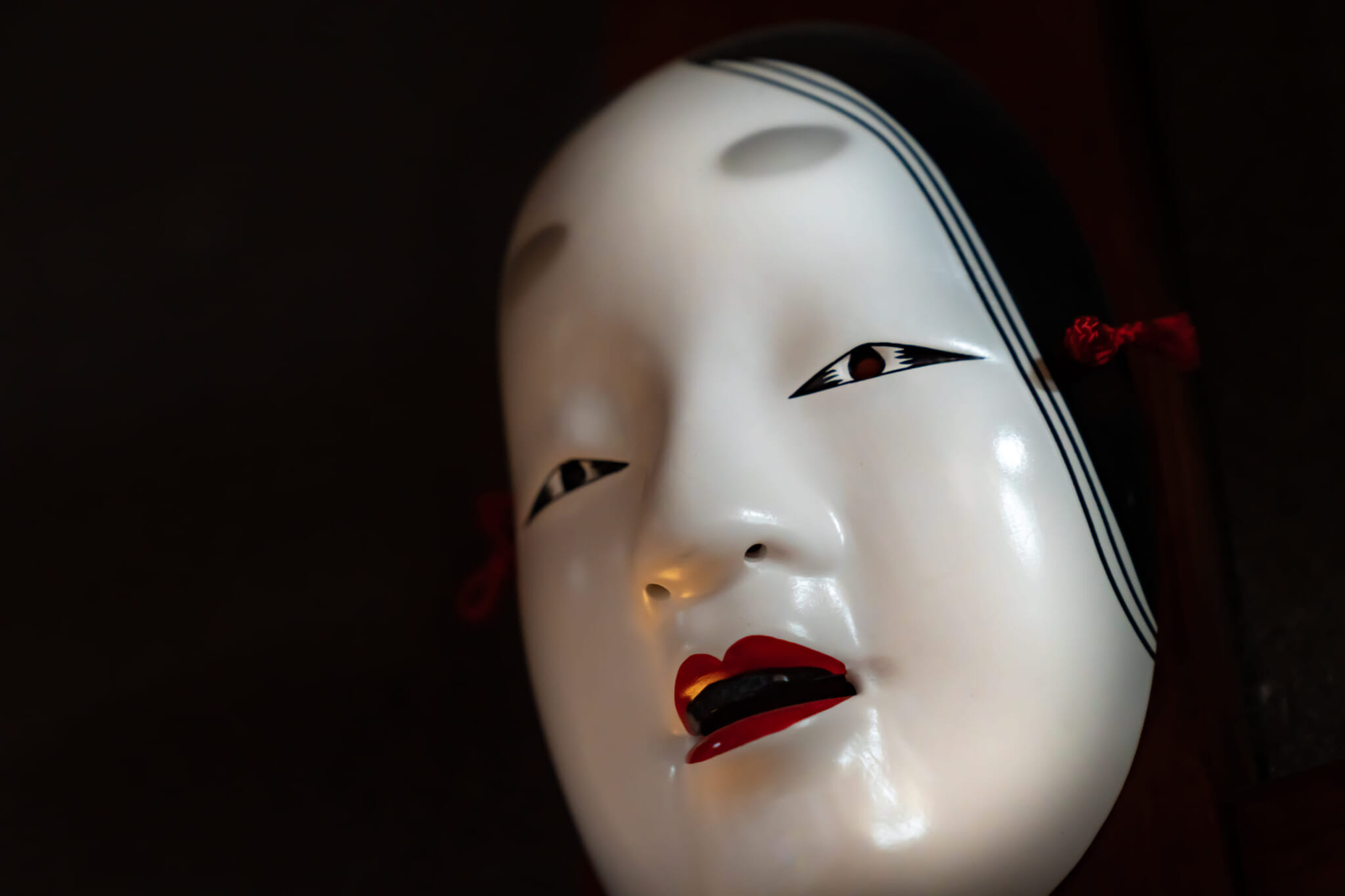 Accompanied by drums and a flute of smoked or burned bamboo, noh’s narrative exposition is achieved by the chant-singing of the actors and a chorus. Shifting rhythms, notionally structured around an eight-beat pattern, lose or replace beats in an organic fashion, while the viewpoint of the actors can switch between characters in a perspective-shattering cubist style. These complex elements, rooted in antiquity, can seem startlingly modern, and have clear parallels in the work of contemporary composers such as Philip Glass and Steve Reich.