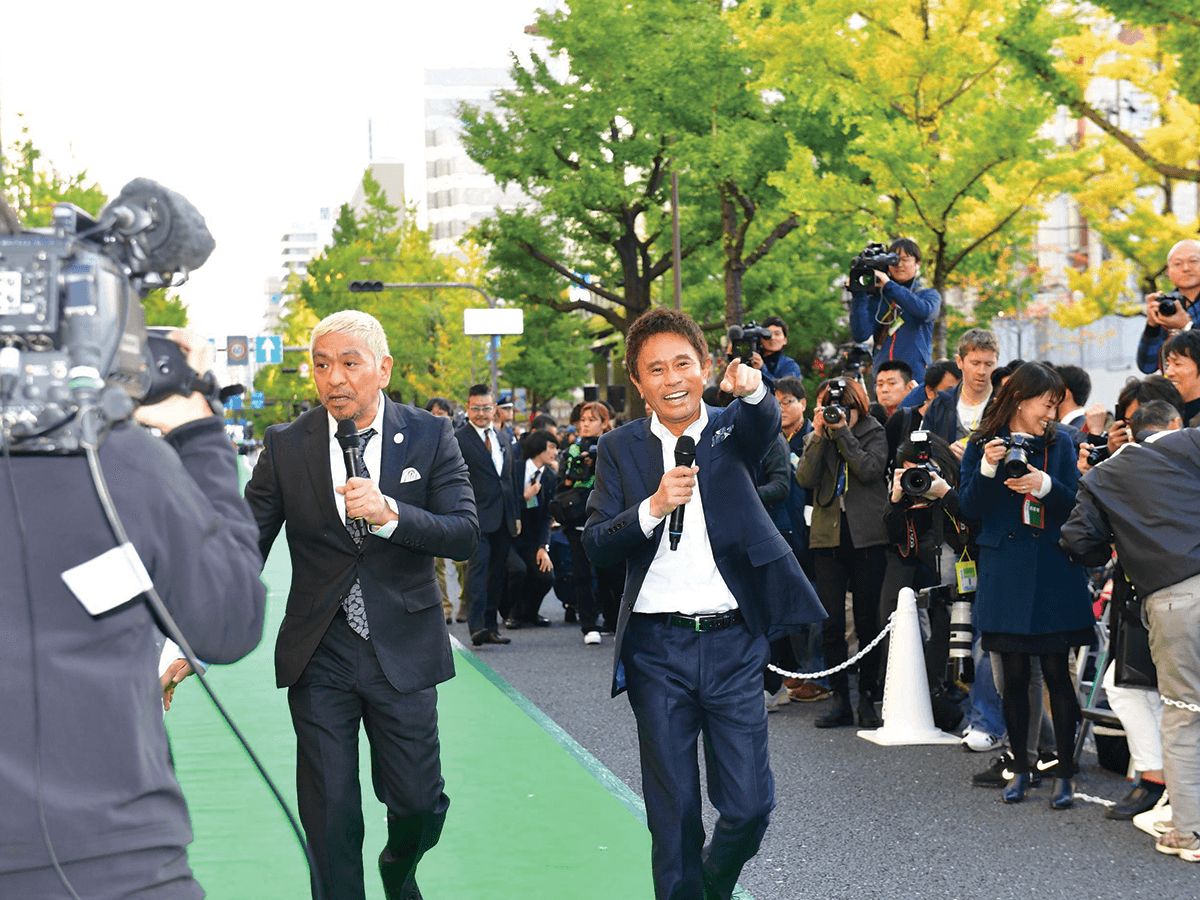 Felix then delighted spectators by sprinting down the 400 meter green carpet. The biggest cheer of the day, however, was reserved for Downtown pairing Hitoshi Matsumoto and Masatoshi Hamada. One of the most influential comedy partnerships in Japan, they are known for their sarcastic boke and tsukkomi style (tsukkomi usually slaps boke on the head when he says something stupid or rude), though famously aren’t particularly close away from work and don’t even know each other’s phone numbers. Their stroll down the carpet seemed to take forever, but nobody seemed to mind as the screams got louder. A short, but extremely well received appearance on the main stage was then followed by the closing ceremony.