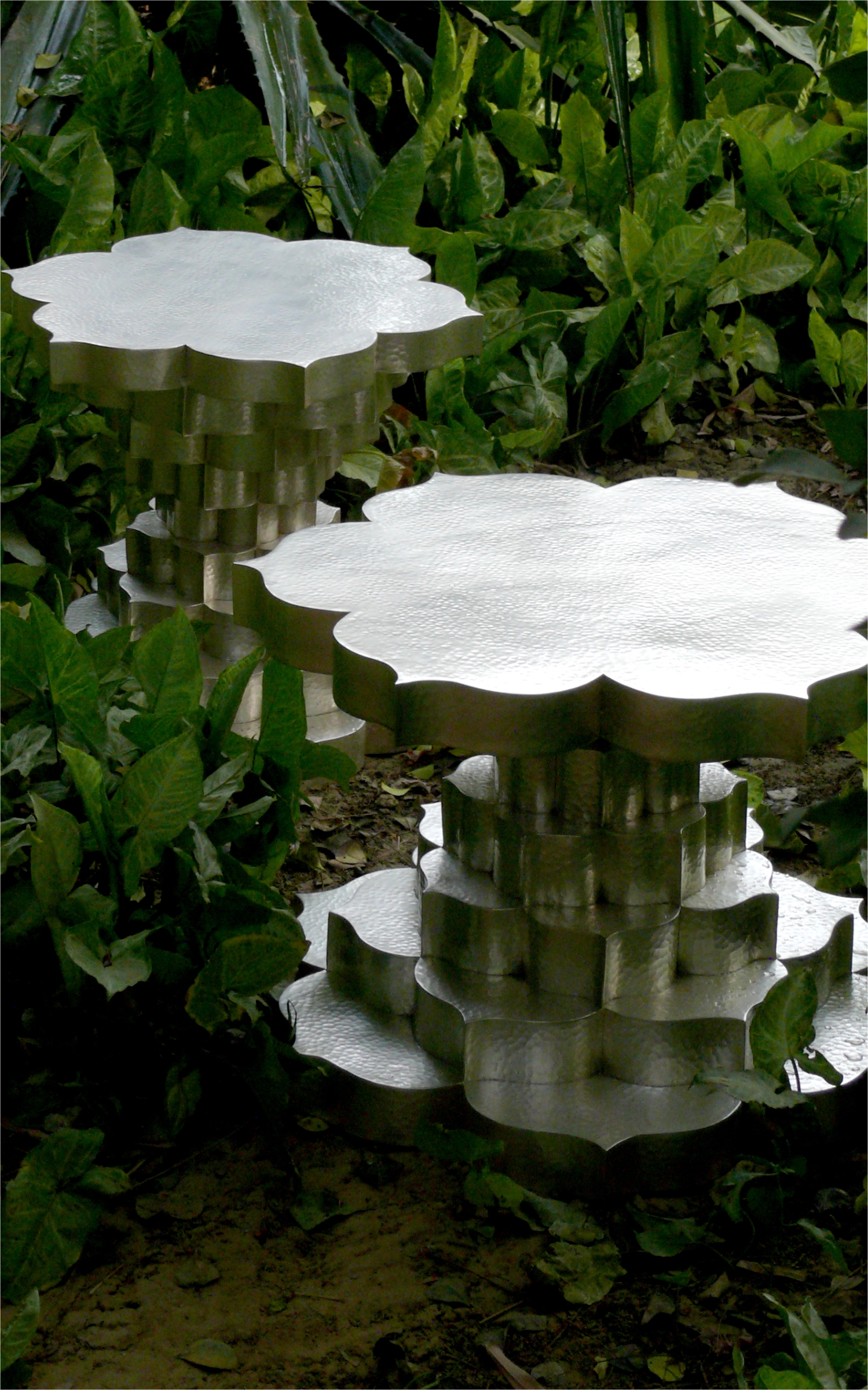 Named after the majestic fortress in Spain, these Alhambra stools are made by stacking various sizes of flower-shaped metal plates, creating a unique and uneven pattern. They can be used both indoors and outdoors, and will add a touch of sophistication to any spot.