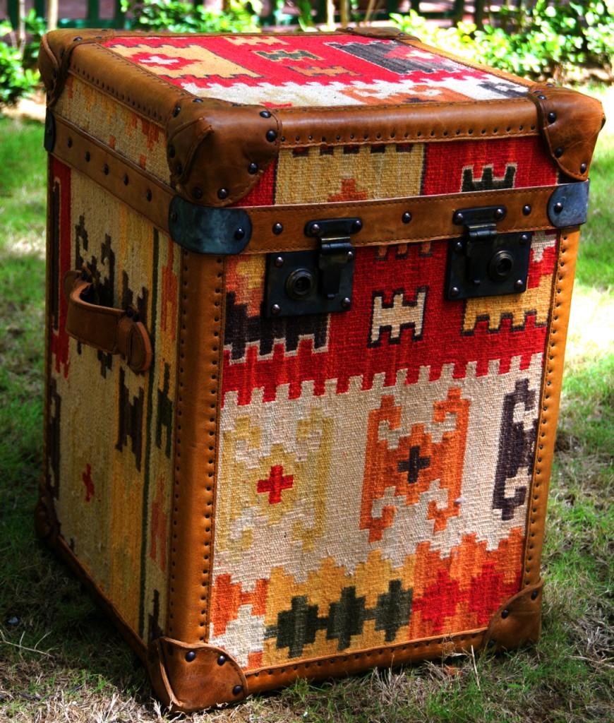 Halo Asia, a world leader in luxury furniture and old fashion trunks, adds a bit of color to its product lineup with this fantastic one-of-a-kind trunk. Made of sturdy leather, metal hardware and durable woven tapestry fabric, this piece is sure to be a standout in any space.