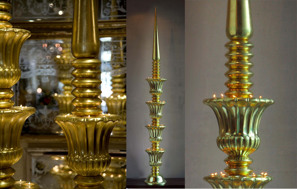 Another magnificent sculpture courtesy of Viya Home, these fluted tea light finials are designed with the ‘India modern’ concept in mind. Fill each flower with tea lights and enjoy the dramatic effect of light and shadow created by their towering height and glittering finish.