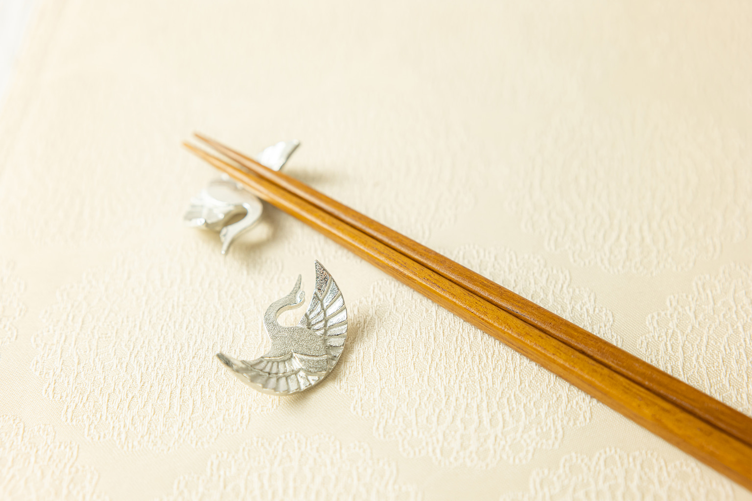 Adorn your table and rest your chopsticks on ornamental matching cranes, symbolizing harmonious marriage, longevity and health.
