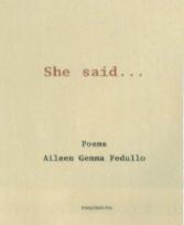 Enhancing the feeling of intimacy, She said… includes an audio CD featuring Fedullo reading 44 of her works. The audio production, like the book, is a clean and simple no-frills approach, and Fedullo’s readings come across immediate and fresh, like dinner-table chit chat, awkward admissions, or juicy gossip. “Poems should be / a spoken lover / not left wanting,” she explains.