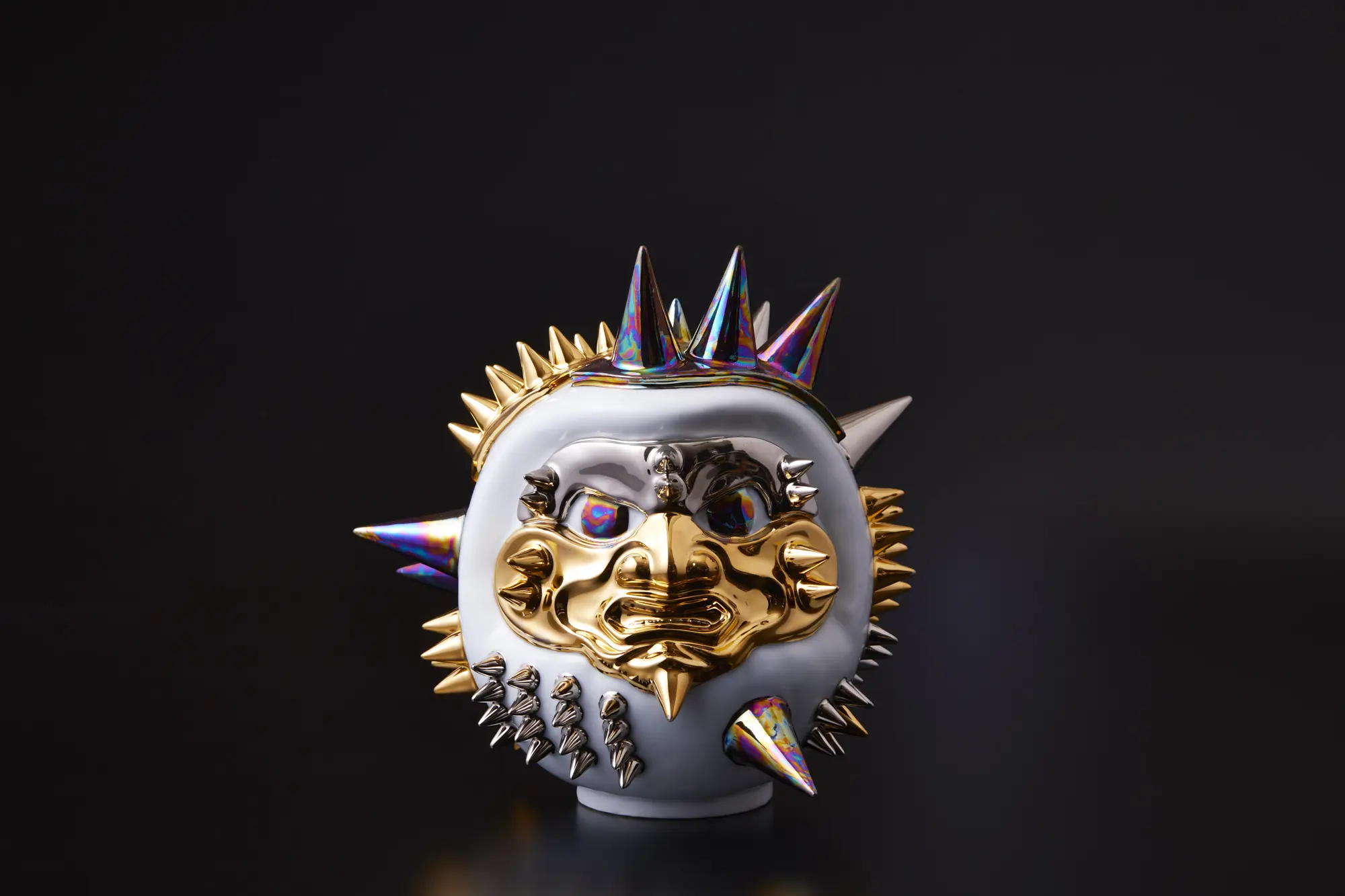 All of Koga’s works start with a traditional object but turn into what one would imagine a punk samurai would love. “Neo Manekineko” and “Neo Daruma” are the strongest examples of how the artist “spikes” his works. Though Koga is not opposed to the punk and rock ’n’ roll comparisons, this was never his intention.