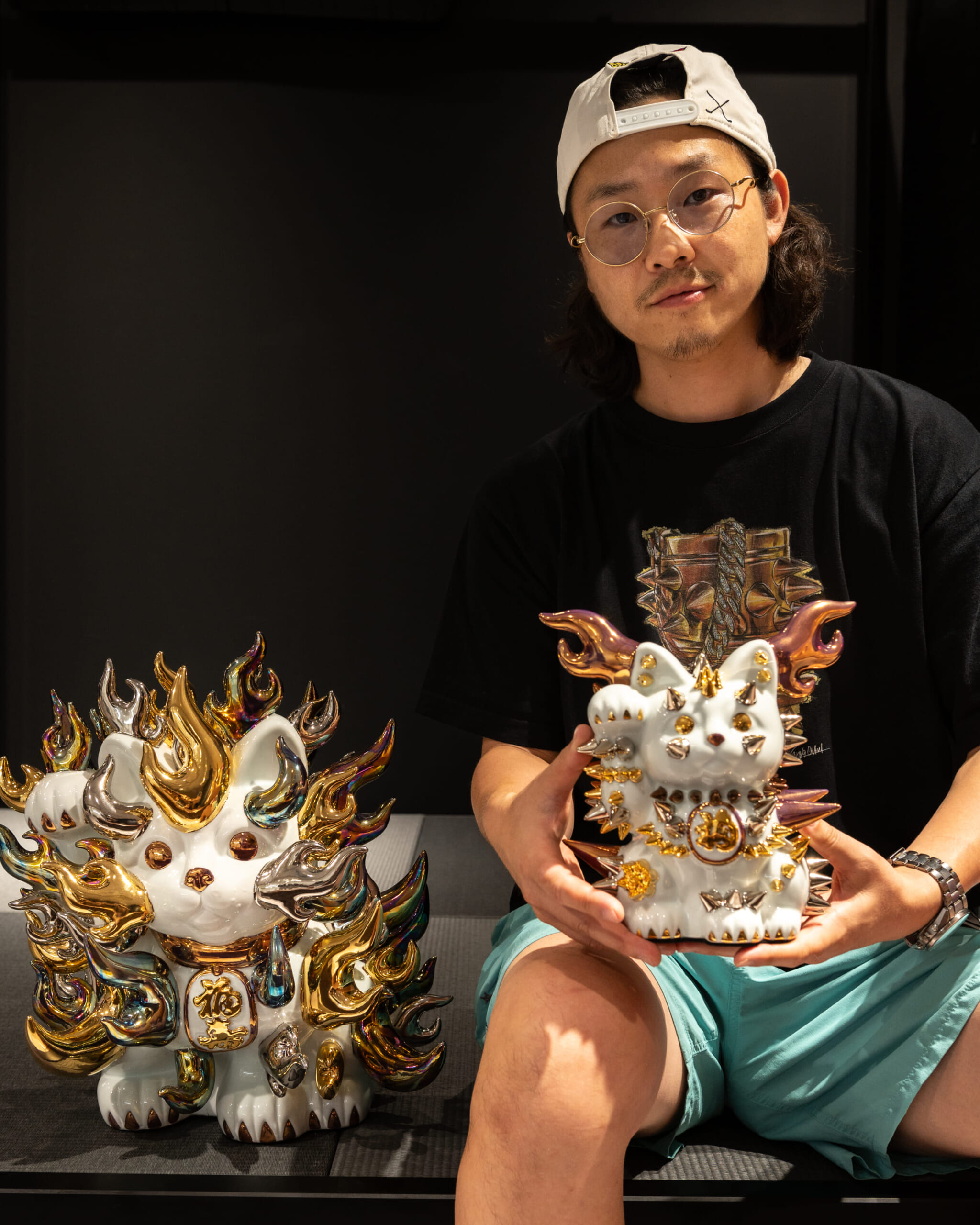 Drinking sake at his wedding out of samurai armor masks he made himself, Takahiro Koga is obviously anything but ordinary. Koga creates wearable ceramics, spike-covered manekineko cats and daruma dolls, and, above all, revels in thinking new things into existence. “‘Learn old things; make them new,’ is a Japanese saying, and it’s my motto,” Koga tells TW.