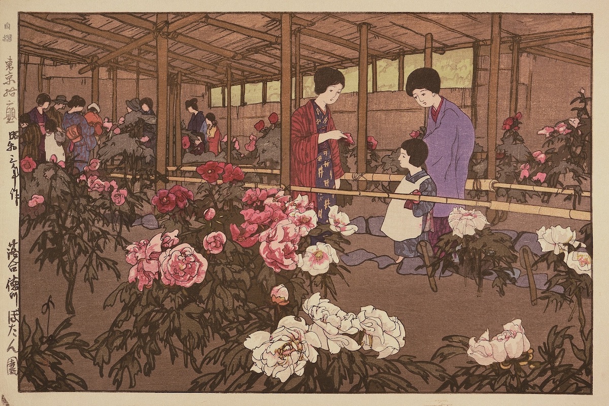 The Tokugawa Peony Garden at Ochiai, Twelve Scenes of Tokyo 1928 Woodcut, paper 25.0×37.2cm